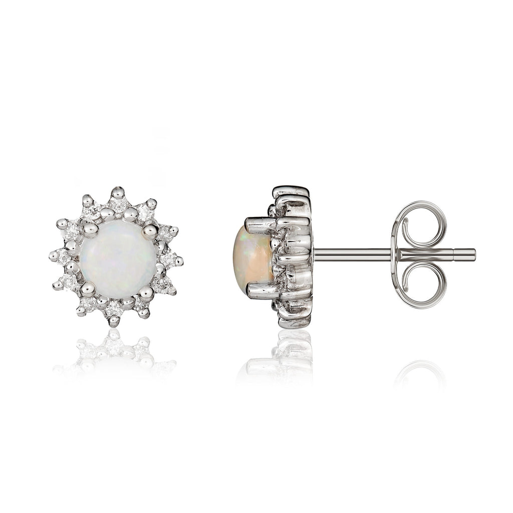 9CT White Gold Round Opal & Diamond Cluster Earrings 4mm