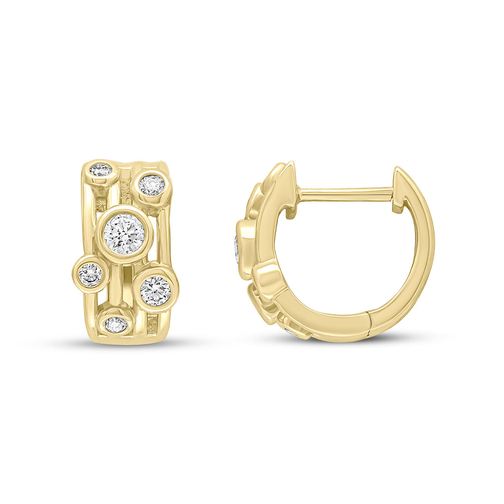 18CT Yellow Gold Round Diamond Bubble Four Row Hinged Huggy Hoop Earrings