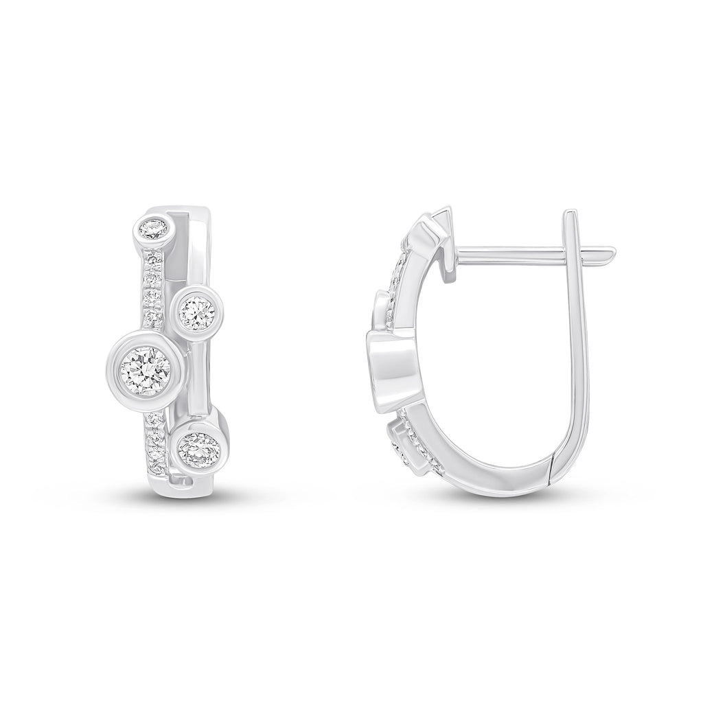 18CT White Gold Round Diamond Rubover and Grain Set Two Row Hinged Half Hoop Earrings
