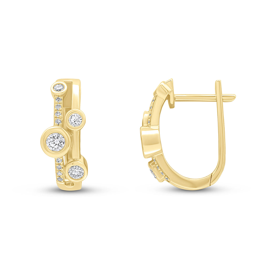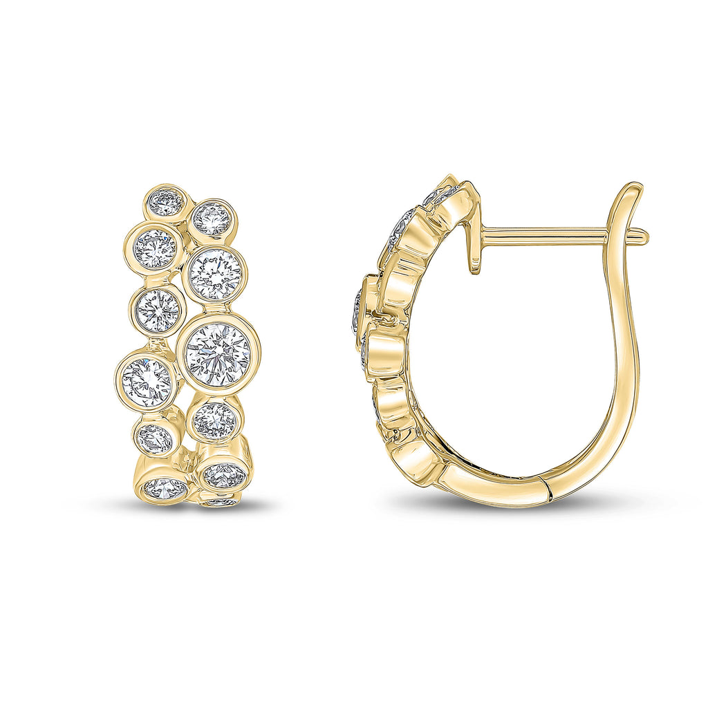 18CT Yellow Gold Round Diamond Rubover and Grain Set Two Row Hinged Half Hoop Earrings