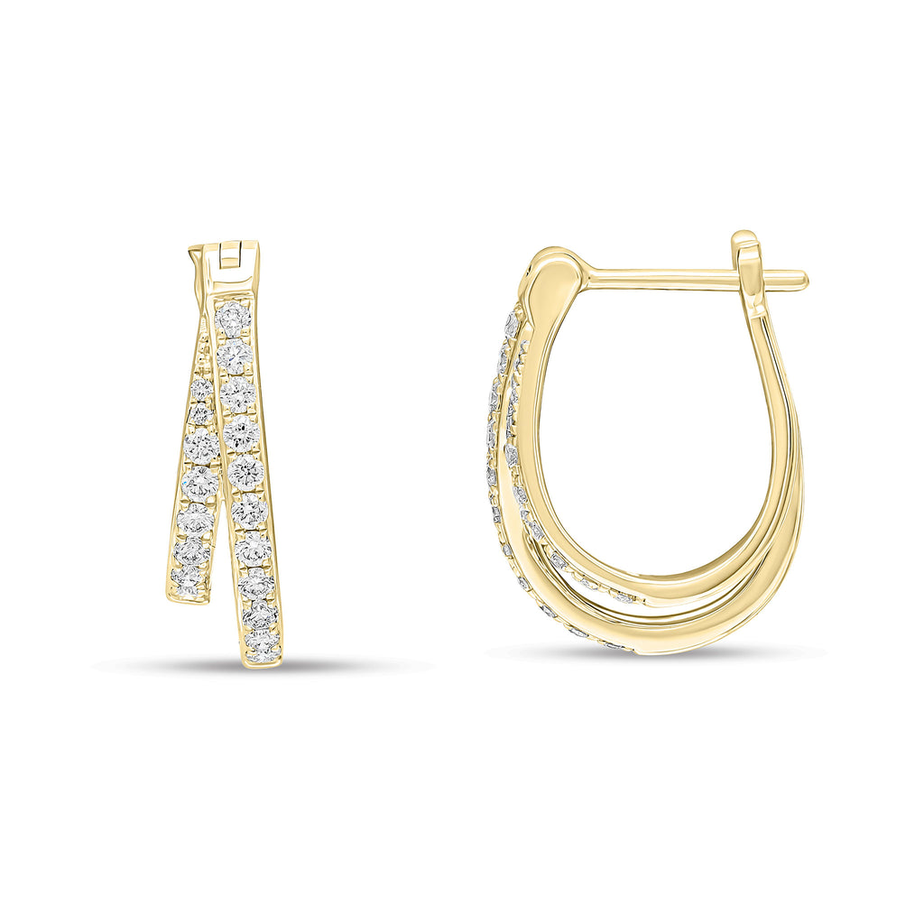 18CT Yellow Gold Claw Set Round Diamond Two Row Hoop Earrings