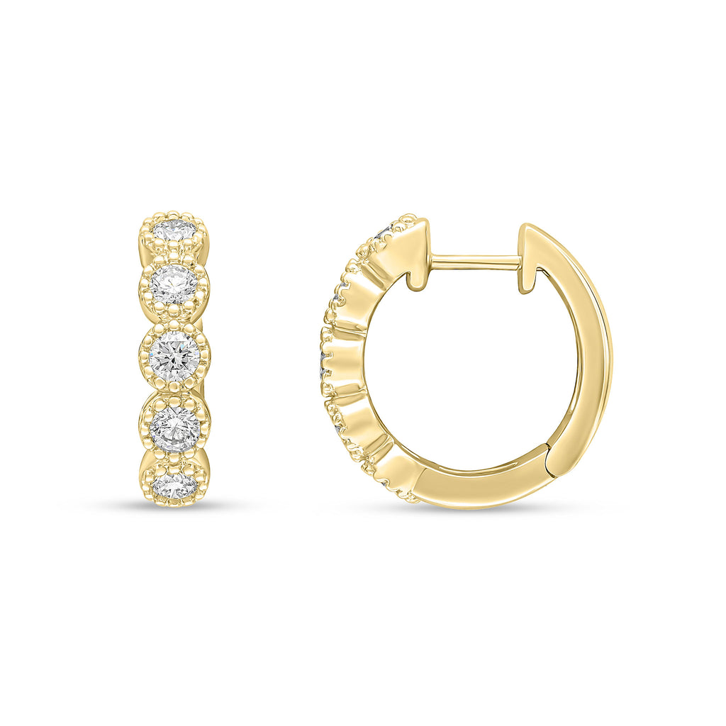 18CT Yellow Gold Round Diamond Millegrain Hoop Earrings