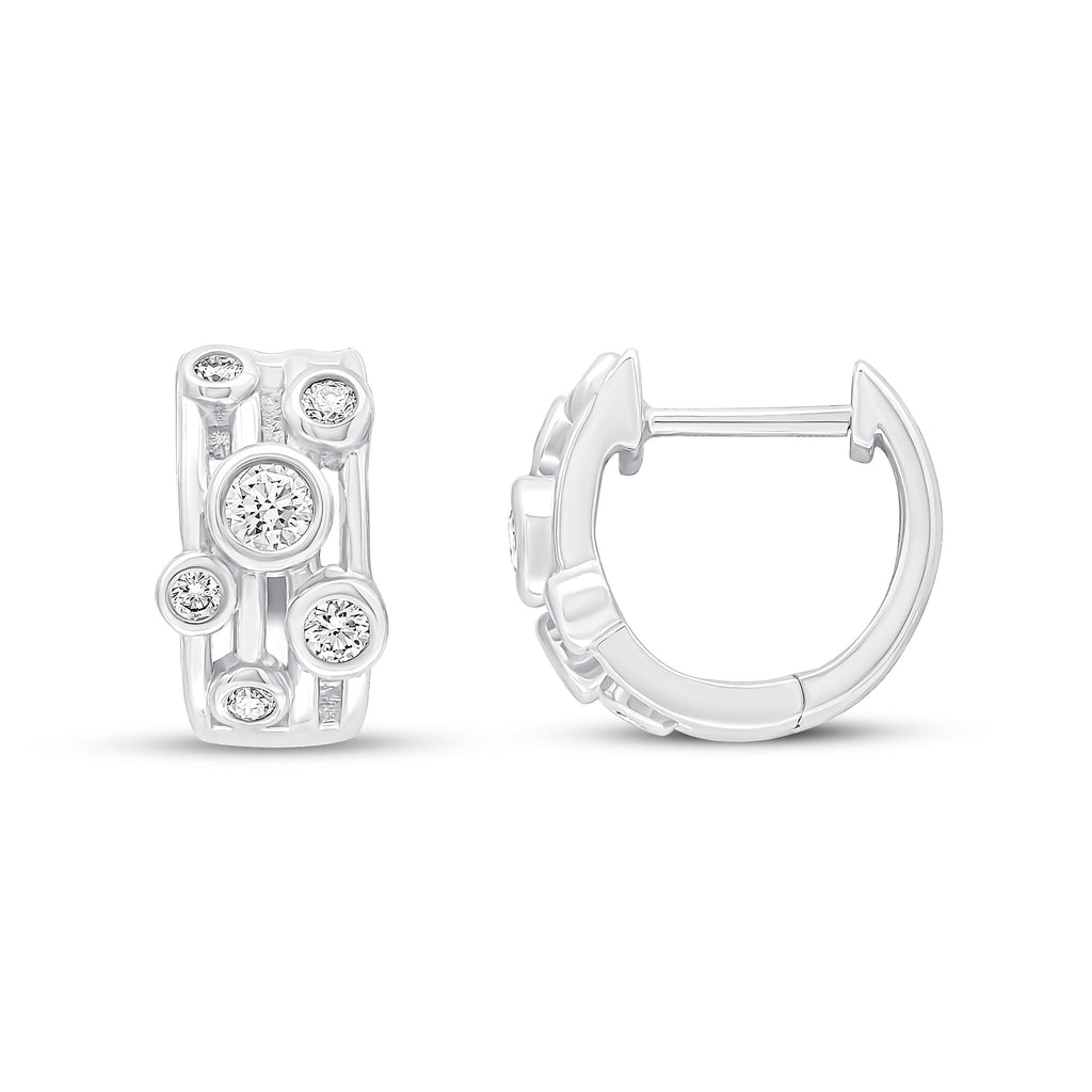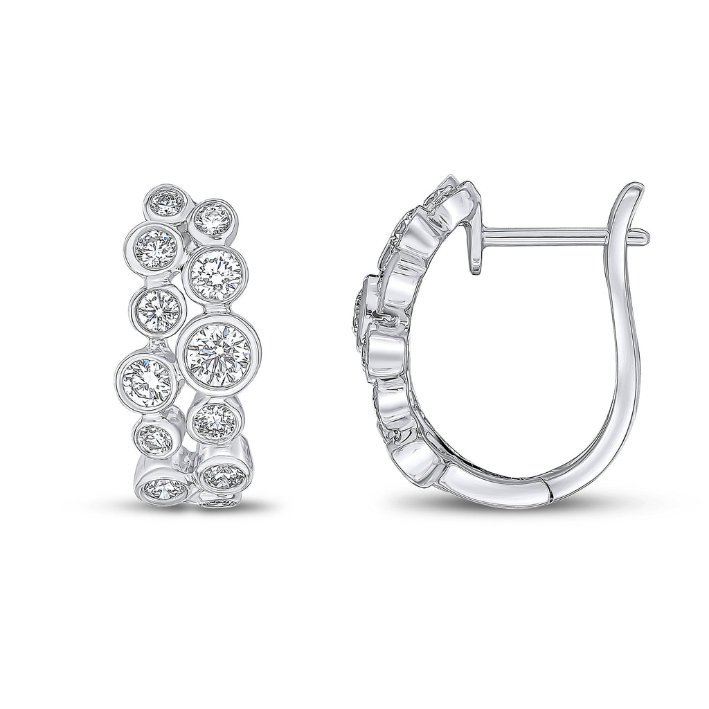 18CT White Gold Round Diamond Bubble Four Row Hinged Huggy Hoop Earrings