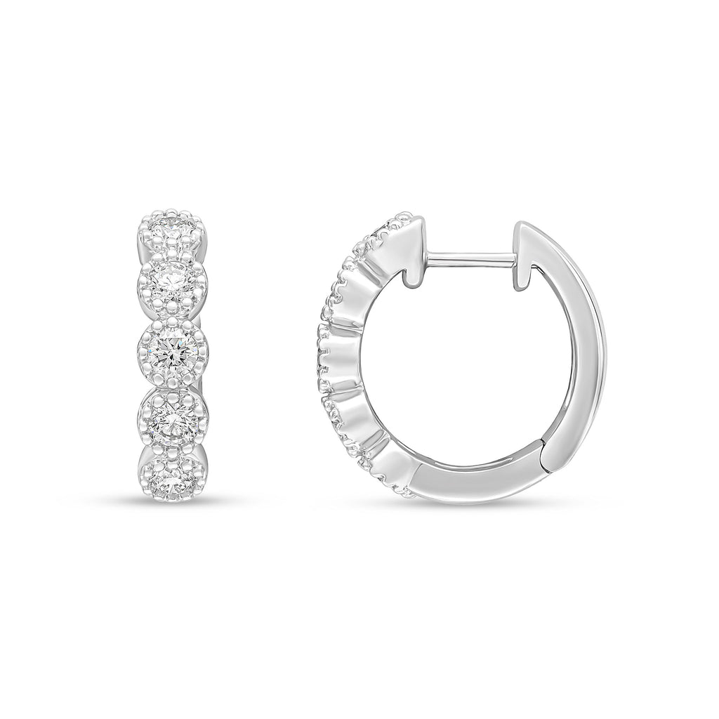 18CT White Gold Round Diamond Millegrain Hoop Earrings