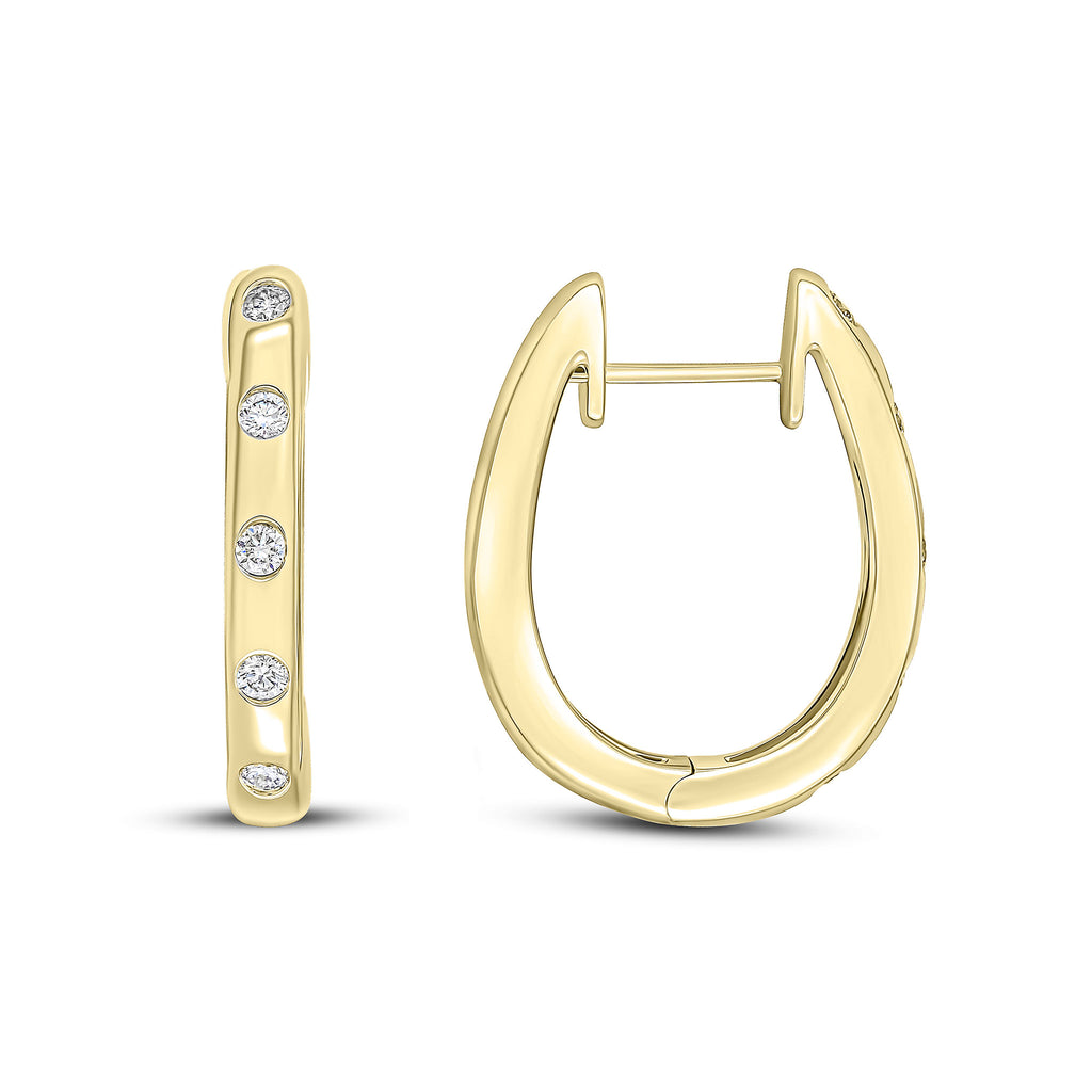 18CT Yellow Gold Round Diamond Flush Set Oval Hinged Huggy Hoop Earrings