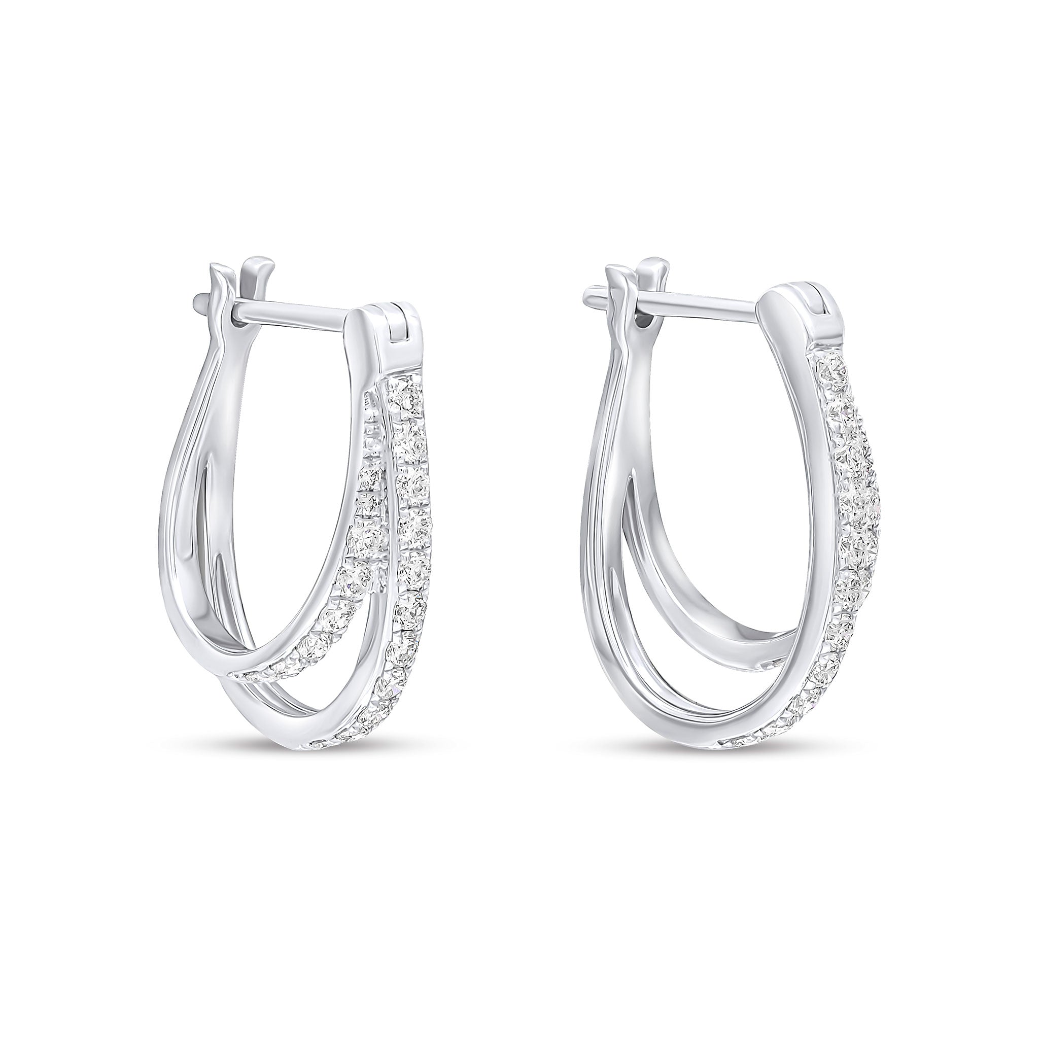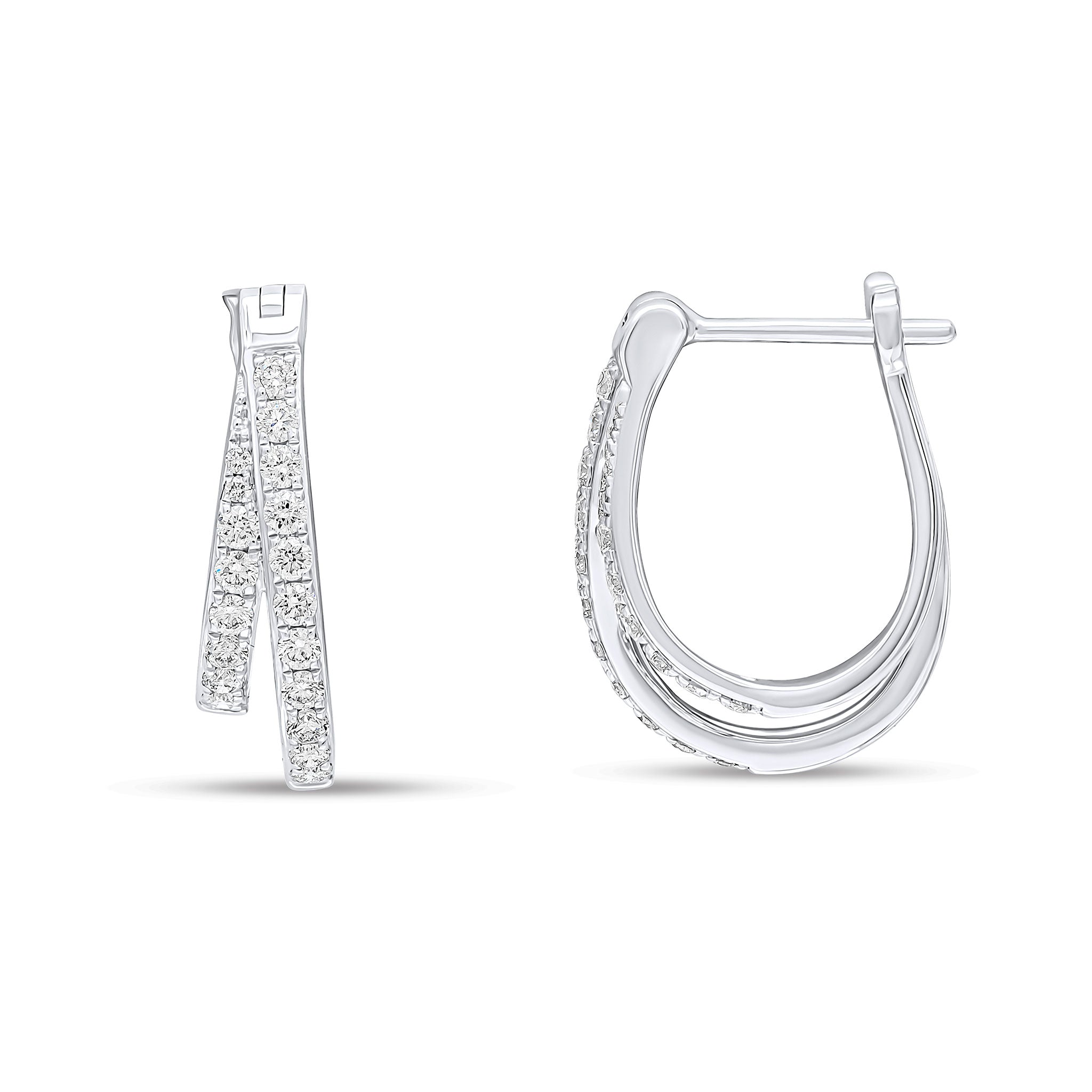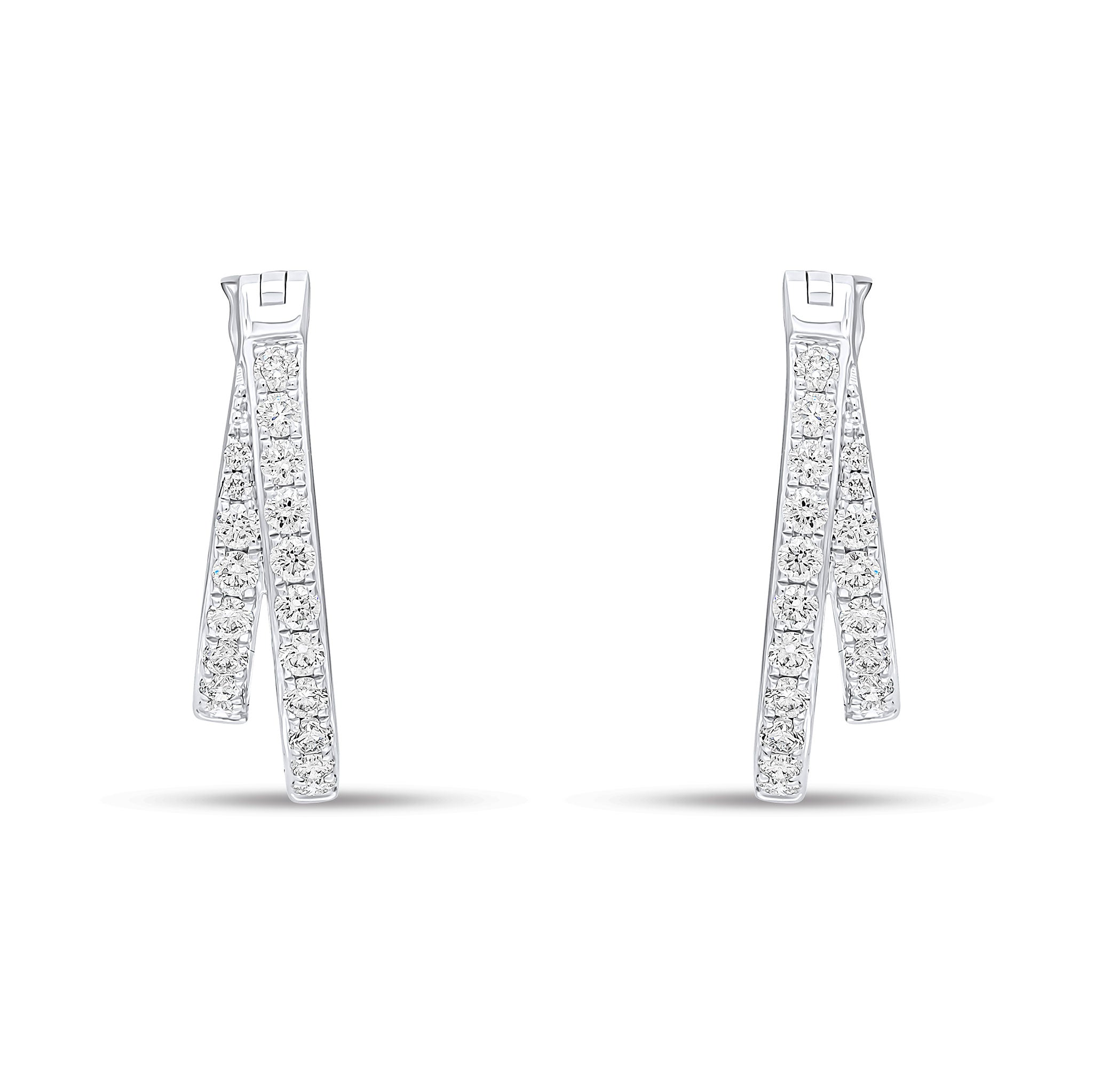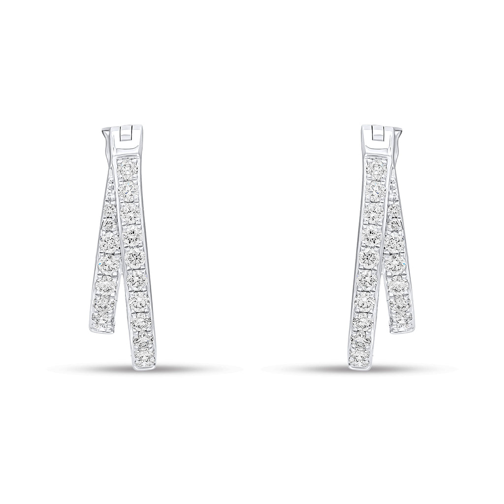 18CT White Gold Claw Set Round Diamond Two Row Hoop Earrings