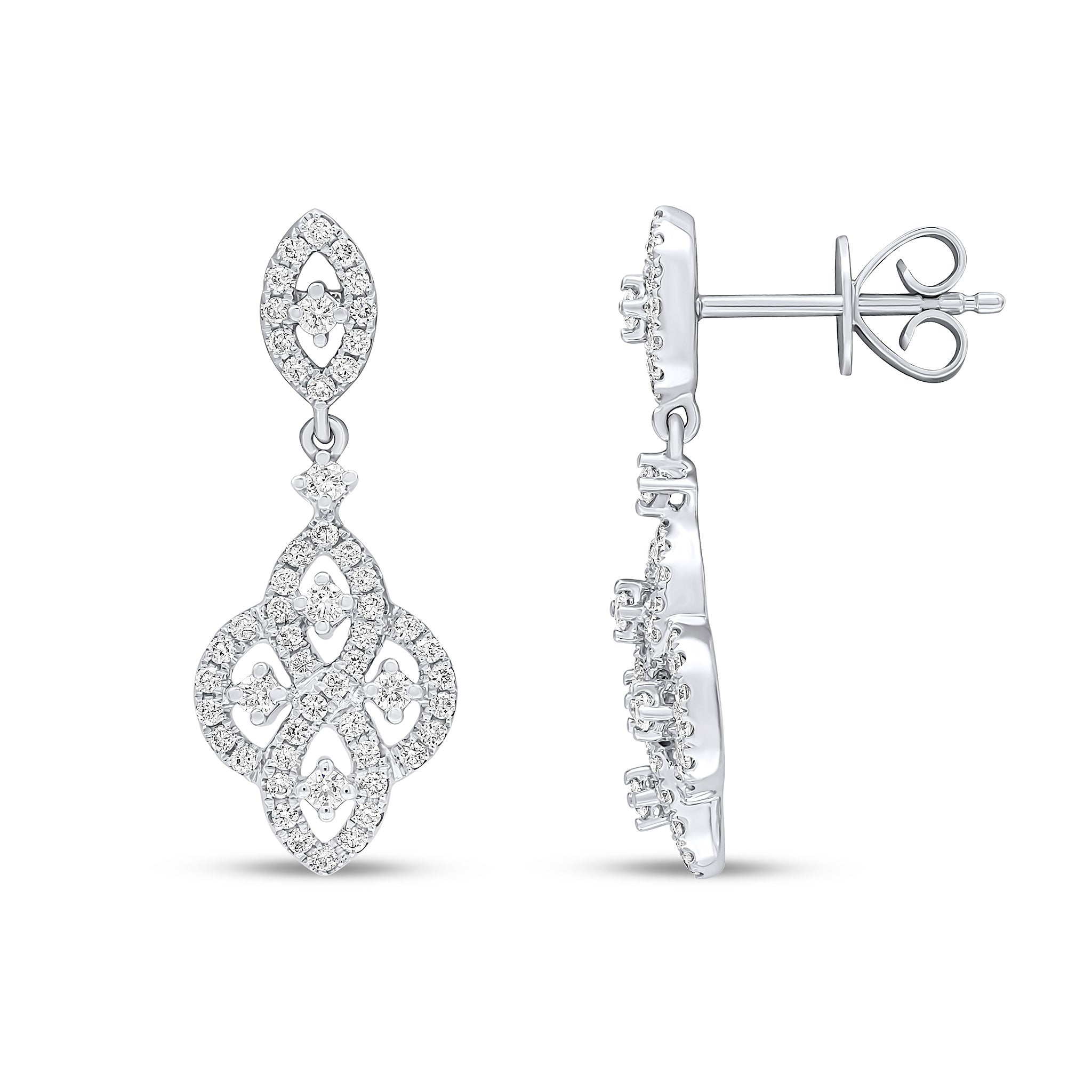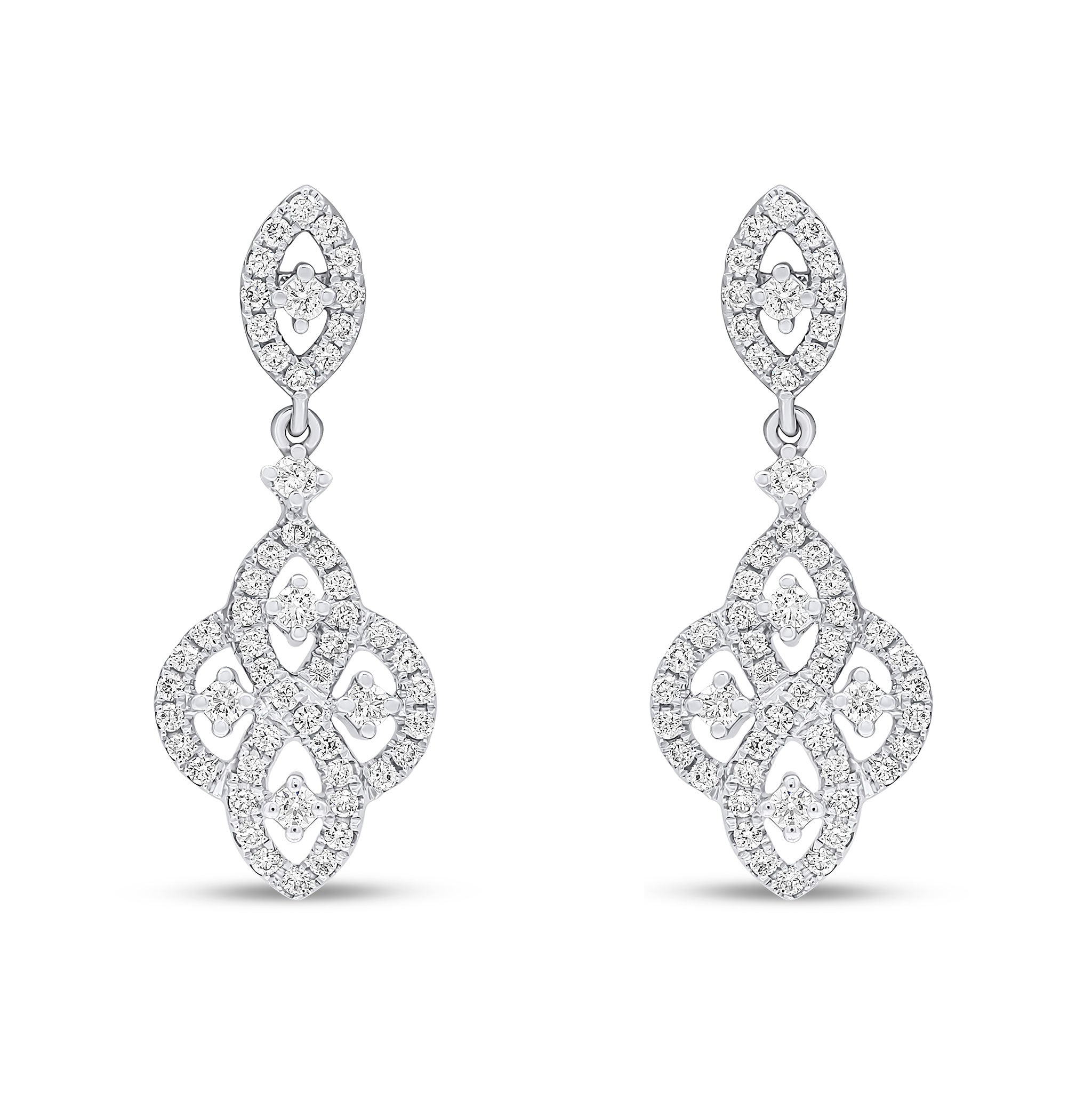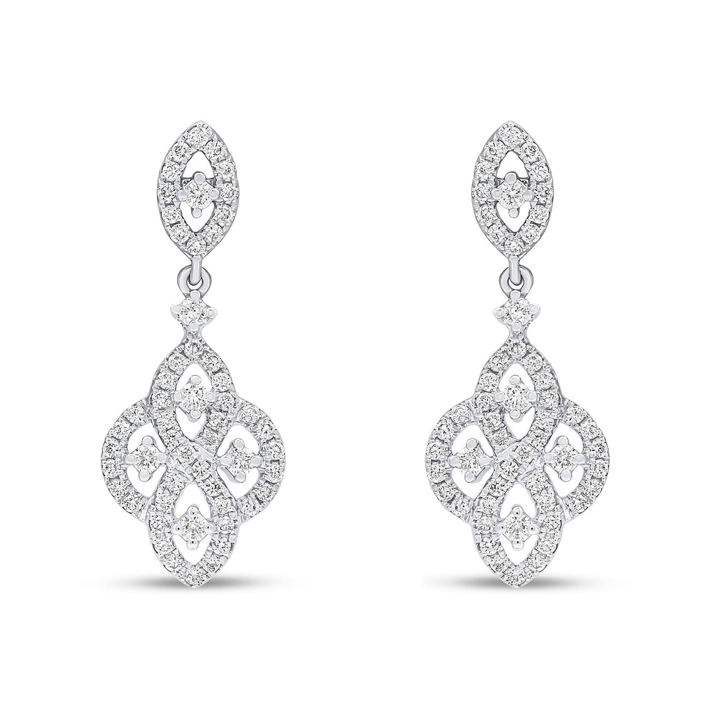 18CT White Gold Round Diamond Marquise Motifs Drop Earrings 0.50CT