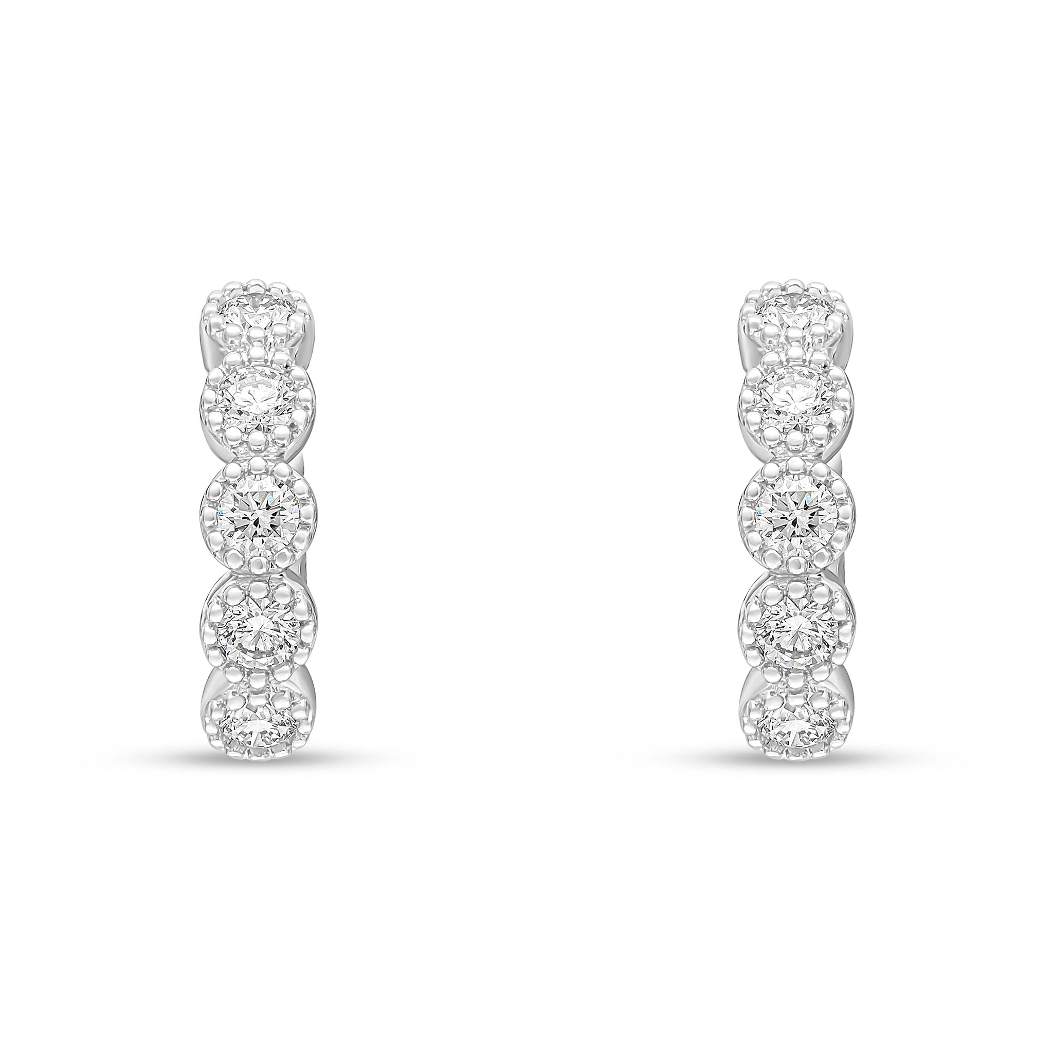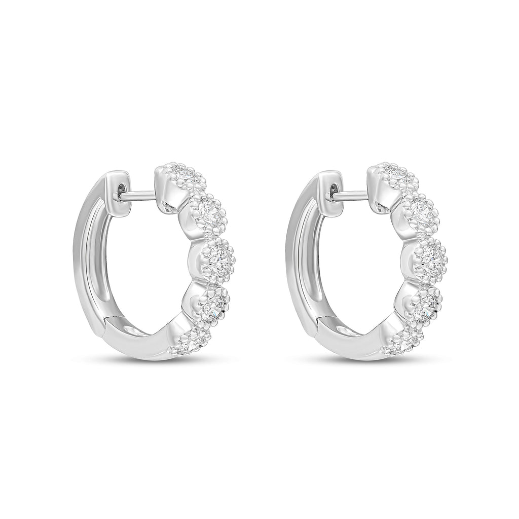 18CT White Gold Round Diamond Millegrain Hoop Earrings