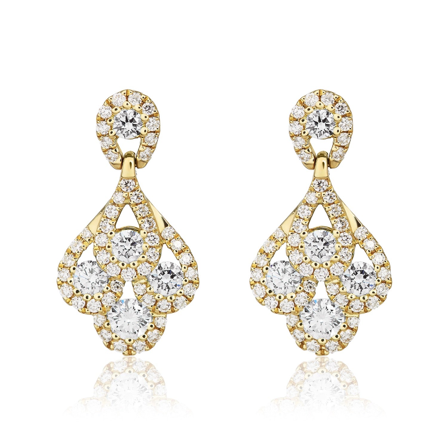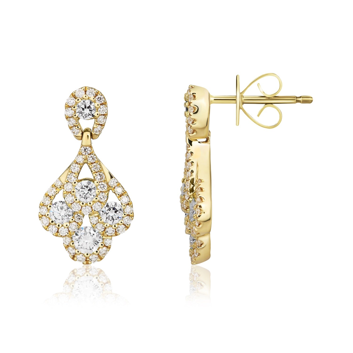 18CT Yellow Gold Diamond Peacock Drop Earrings