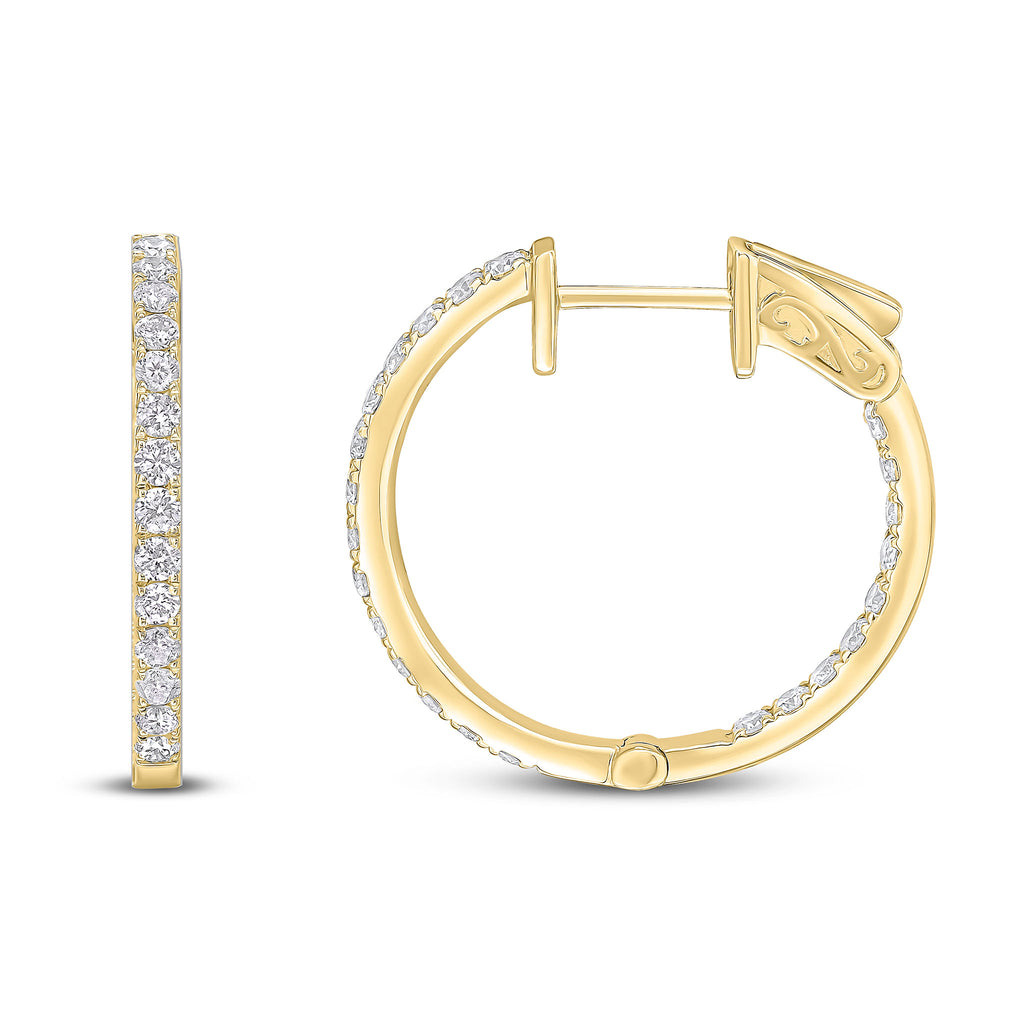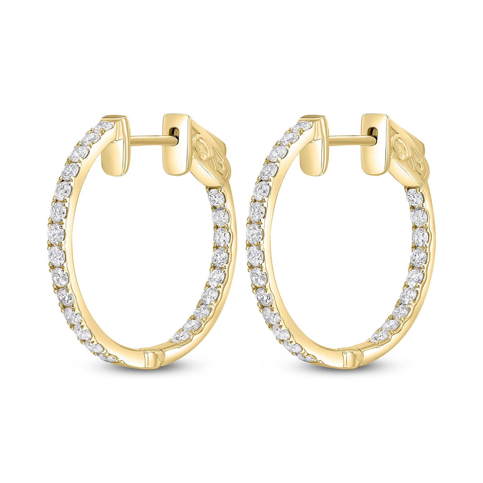 18CT Yellow Gold Full Diamond Round Hoop Earrings 20mm
