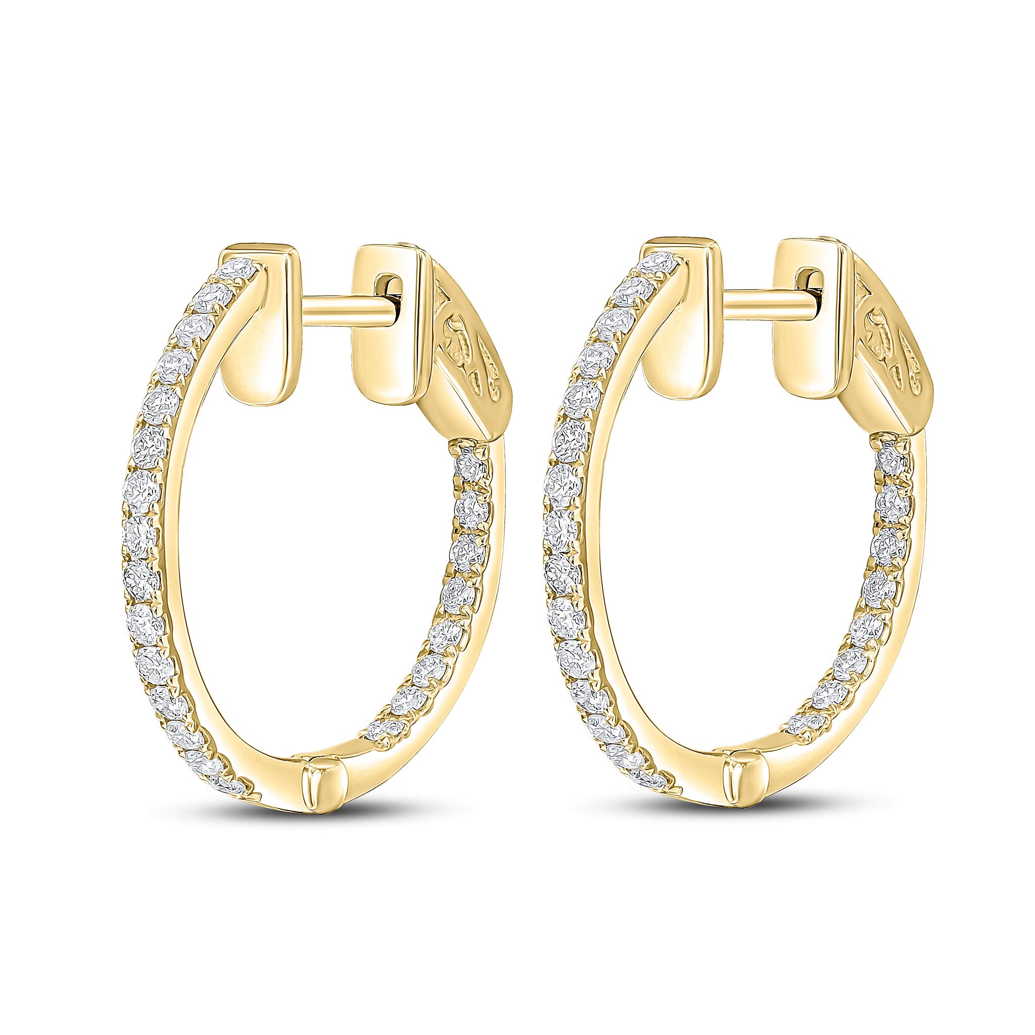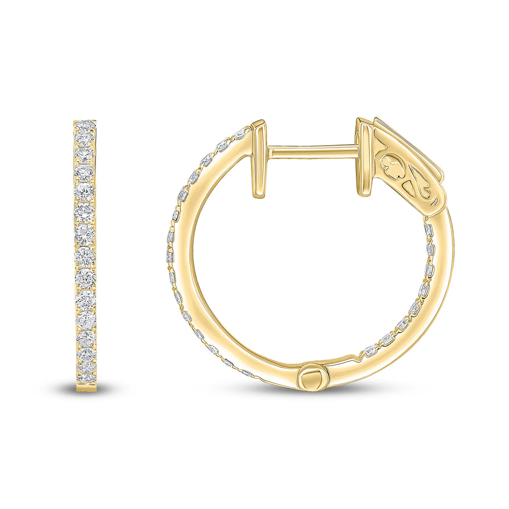 18CT Yellow Gold Full Diamond Round Hoop Earrings 18mm