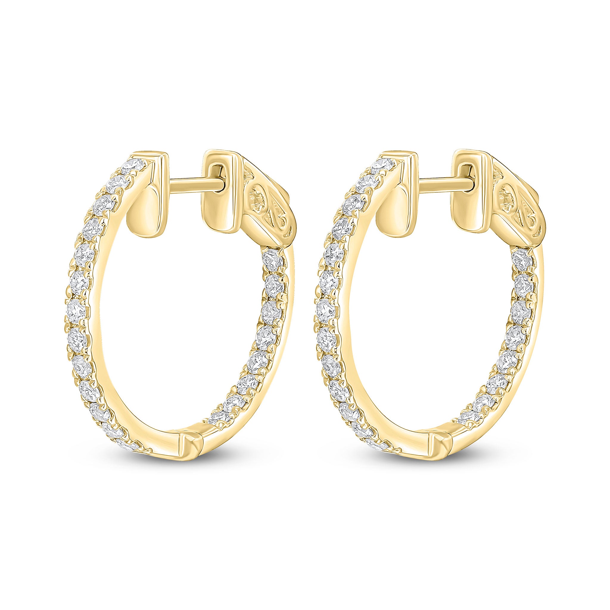 18CT Yellow Gold Full Diamond Round Hoop Earrings 18mm