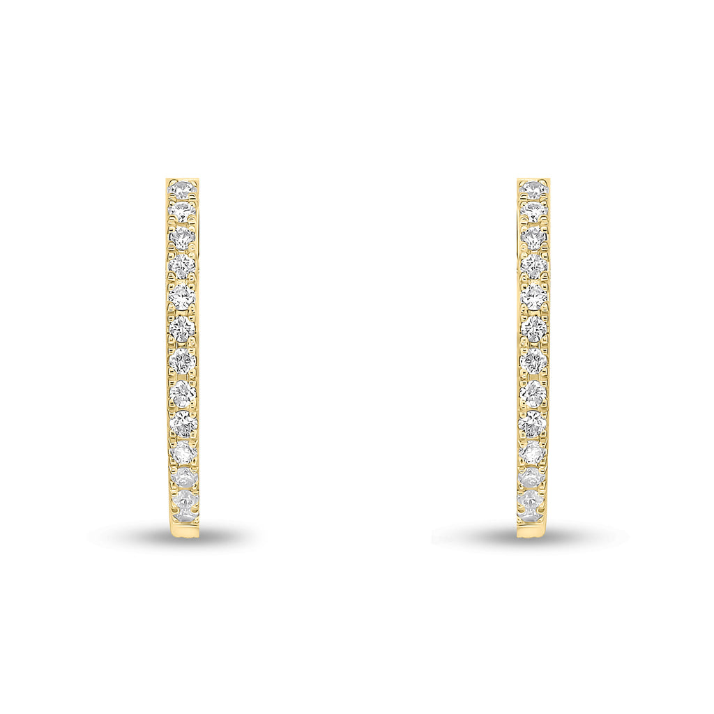 18CT Yellow Gold Oval Full Diamond Hoop Earrings 17x15mm