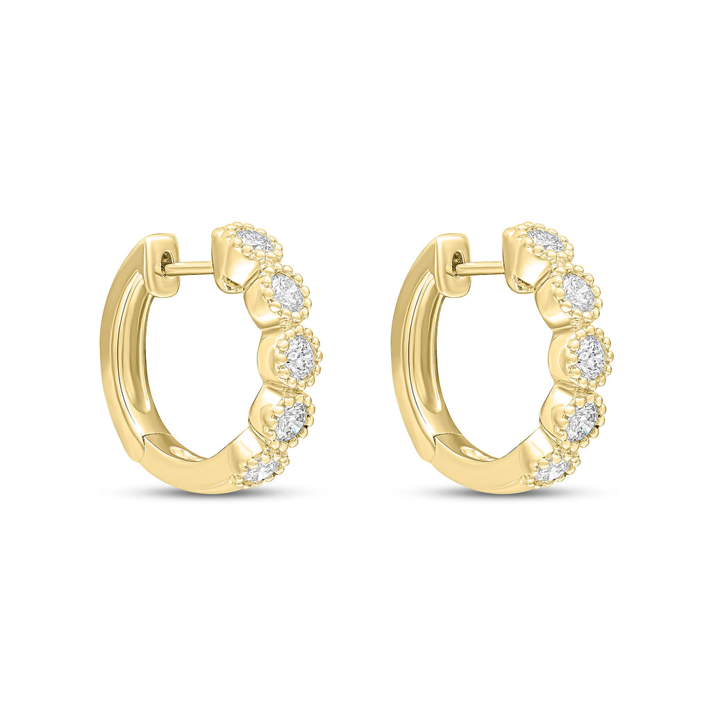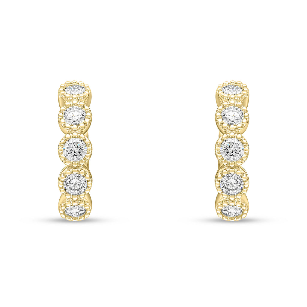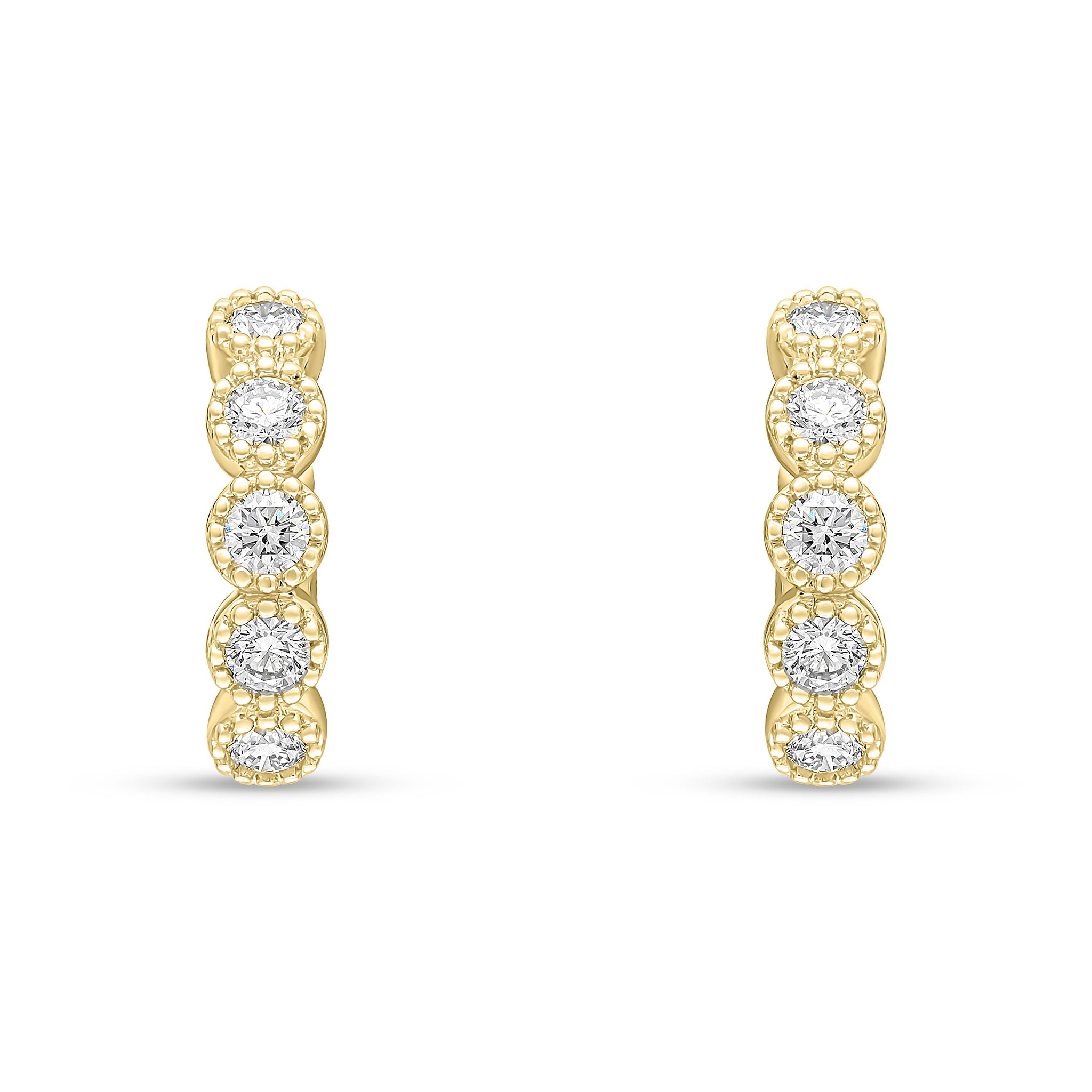18CT Yellow Gold Round Diamond Millegrain Hoop Earrings