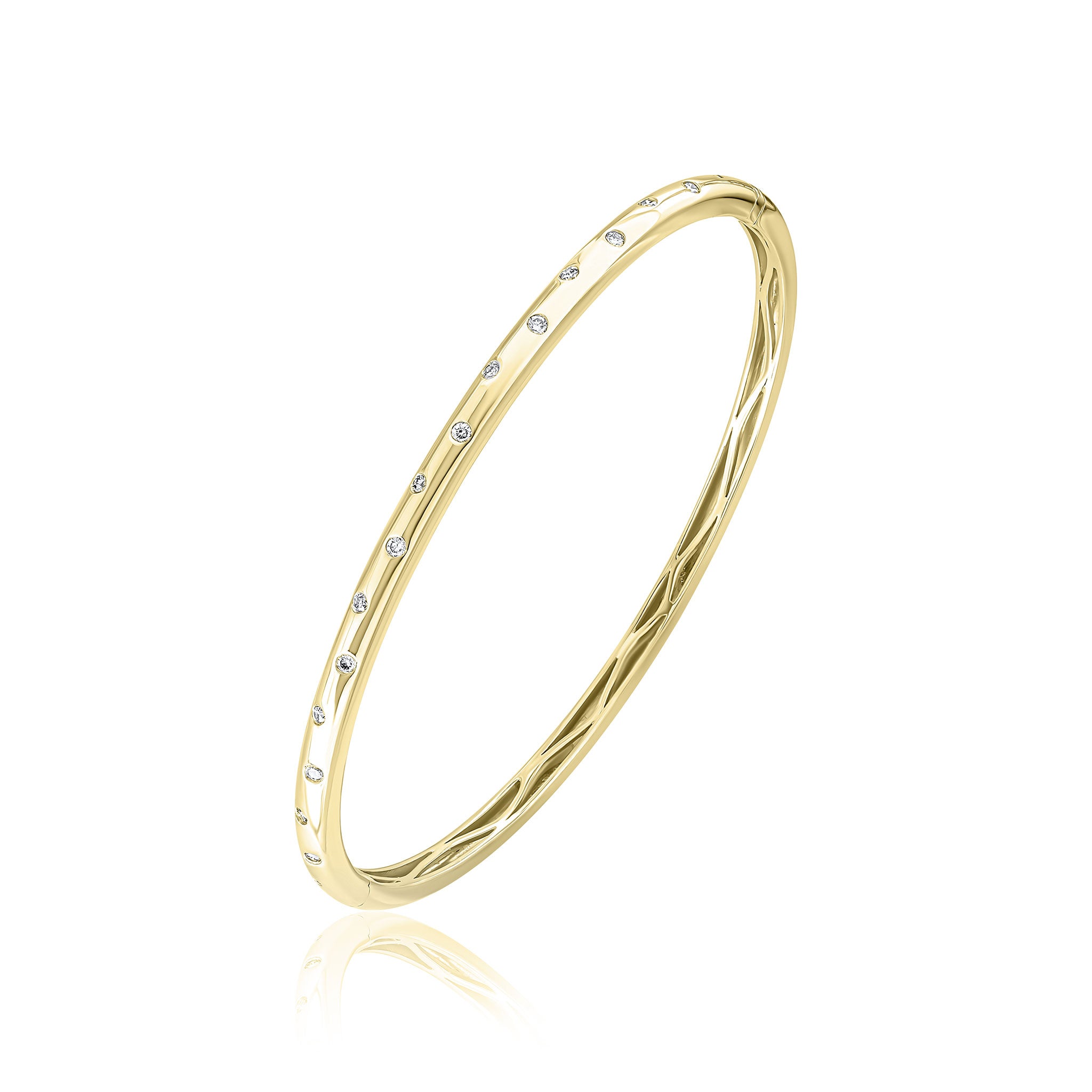 18CT Yellow Gold Round Diamond Scatter Flush Set Polished Domed Hinged Bangle