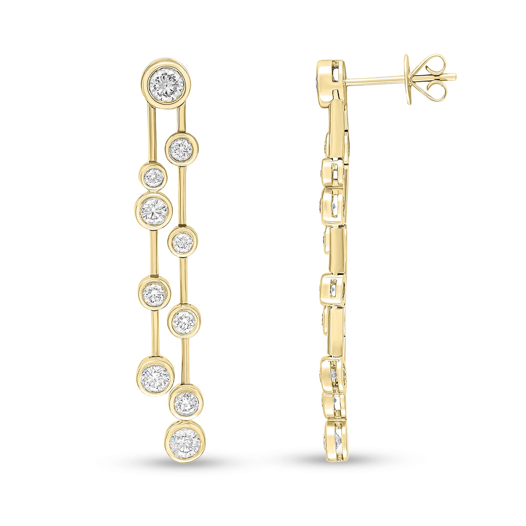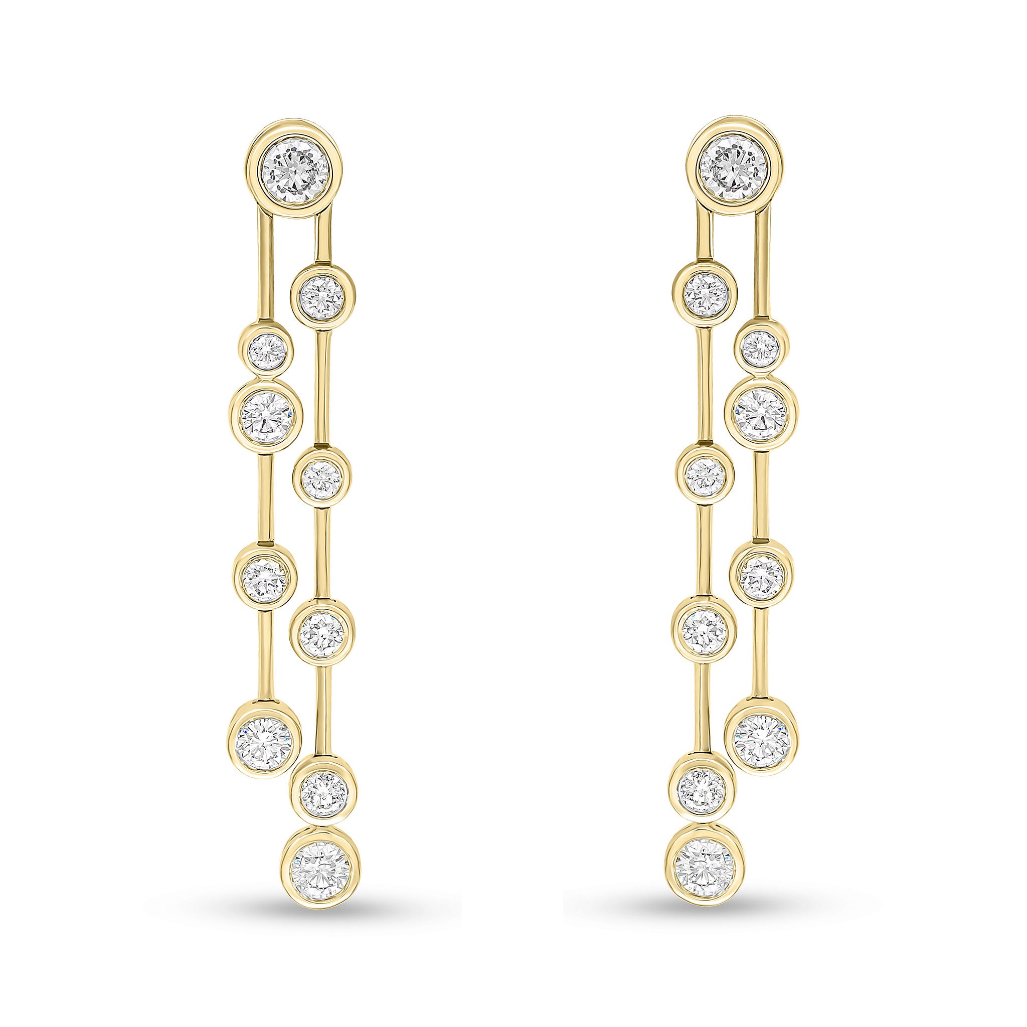 18CT Yellow Gold Round Diamond Two Row Bubble Drop Earrings 1.5CT