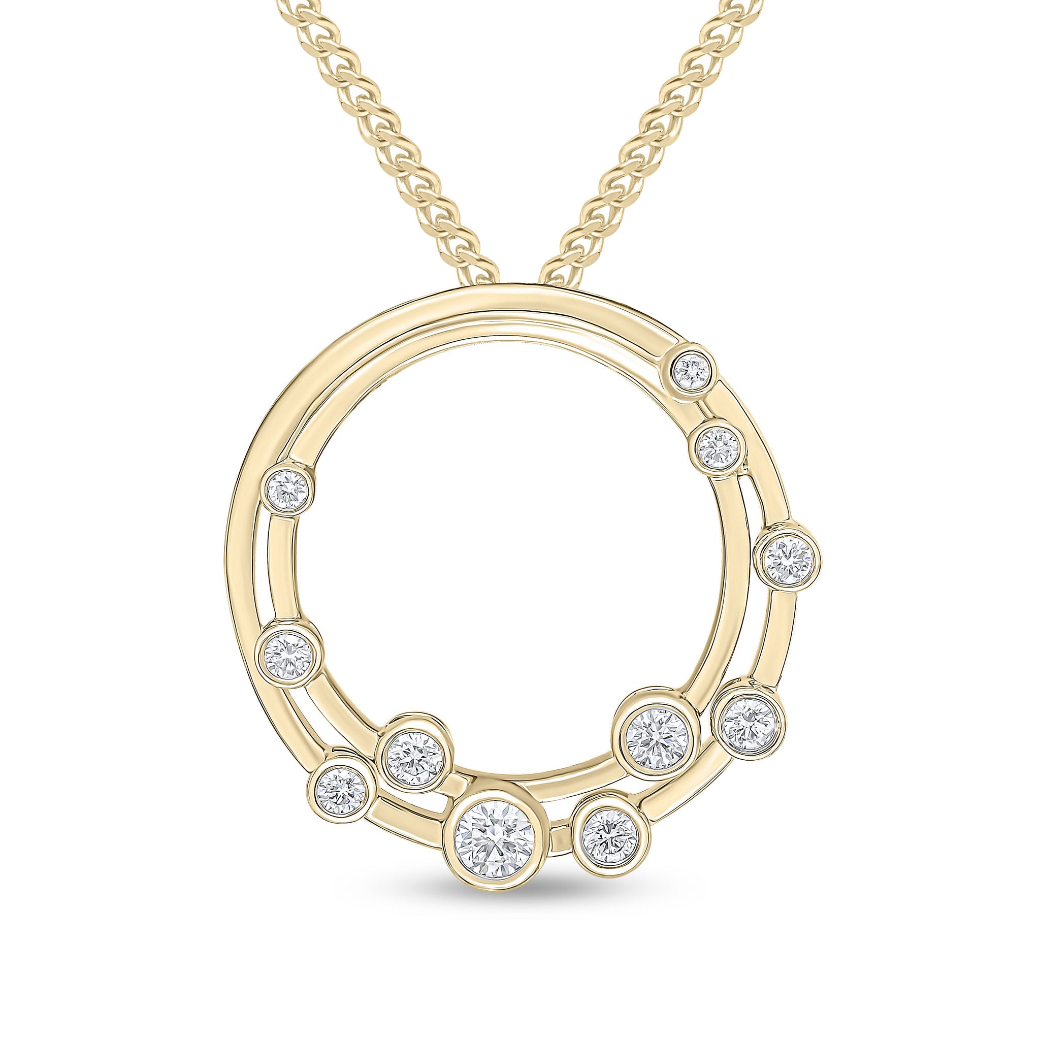 18CT Yellow Gold Rubover Round Diamond Bubble Double Circle Slider Pendant 24mm