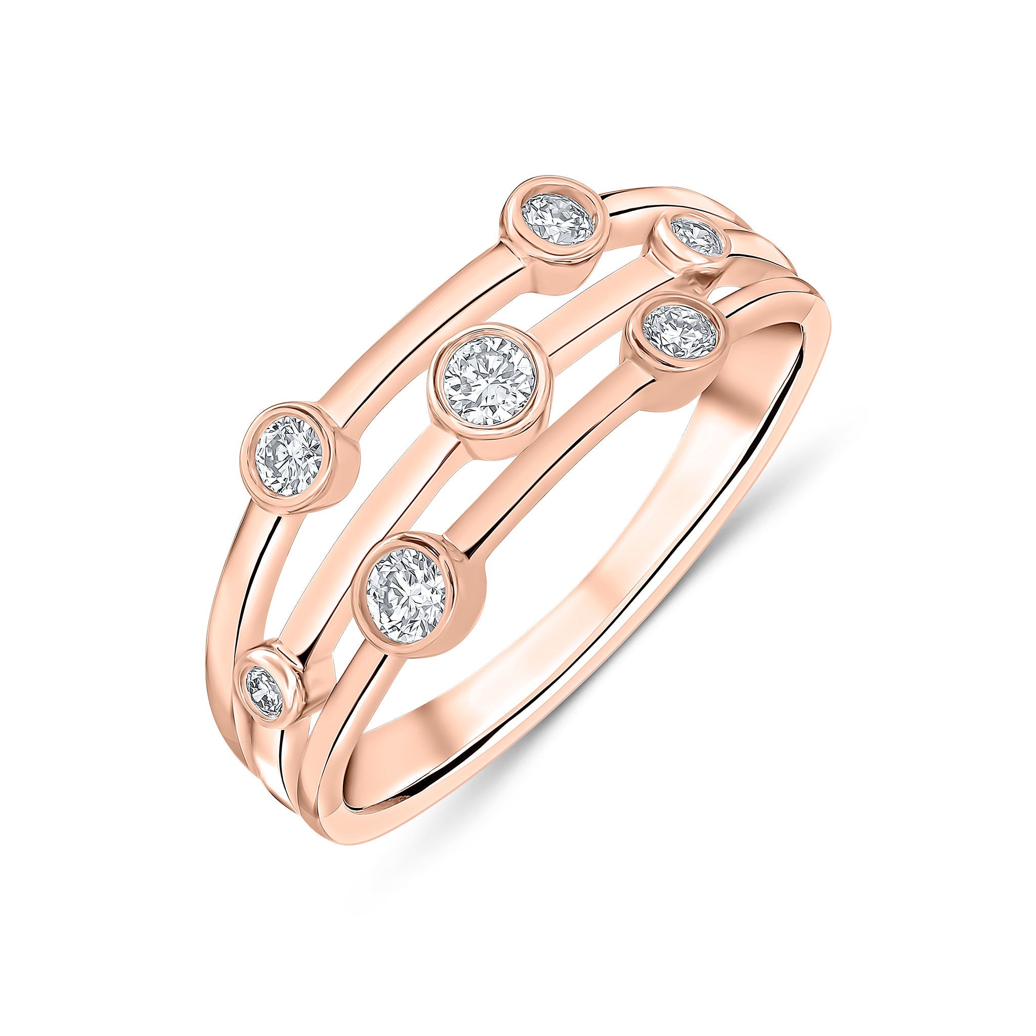 9CT Rose Gold Diamond 3 Row Bubble Ring 0.25ct