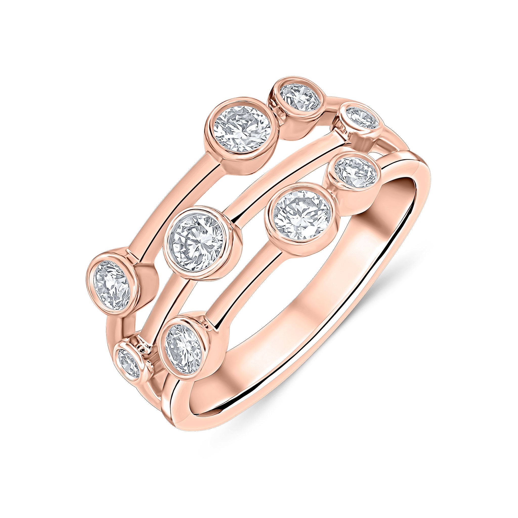 9CT Rose Gold Diamond 3 Row Bubble Ring 0.75ct