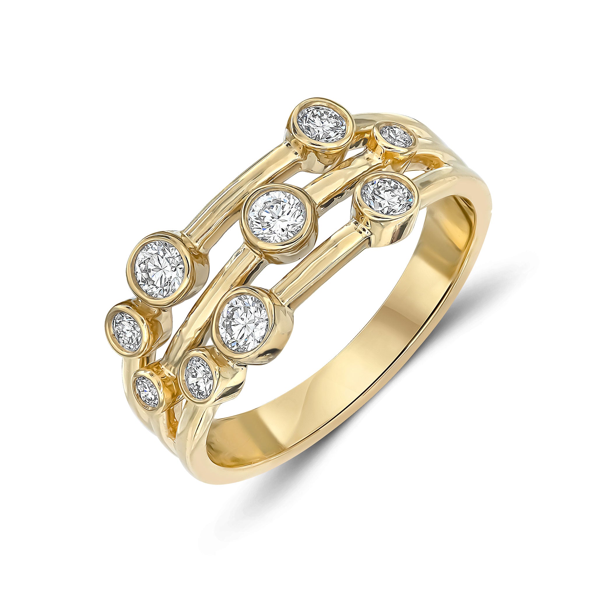 9CT Yellow Gold Diamond 3 Row Bubble Ring 0.50ct
