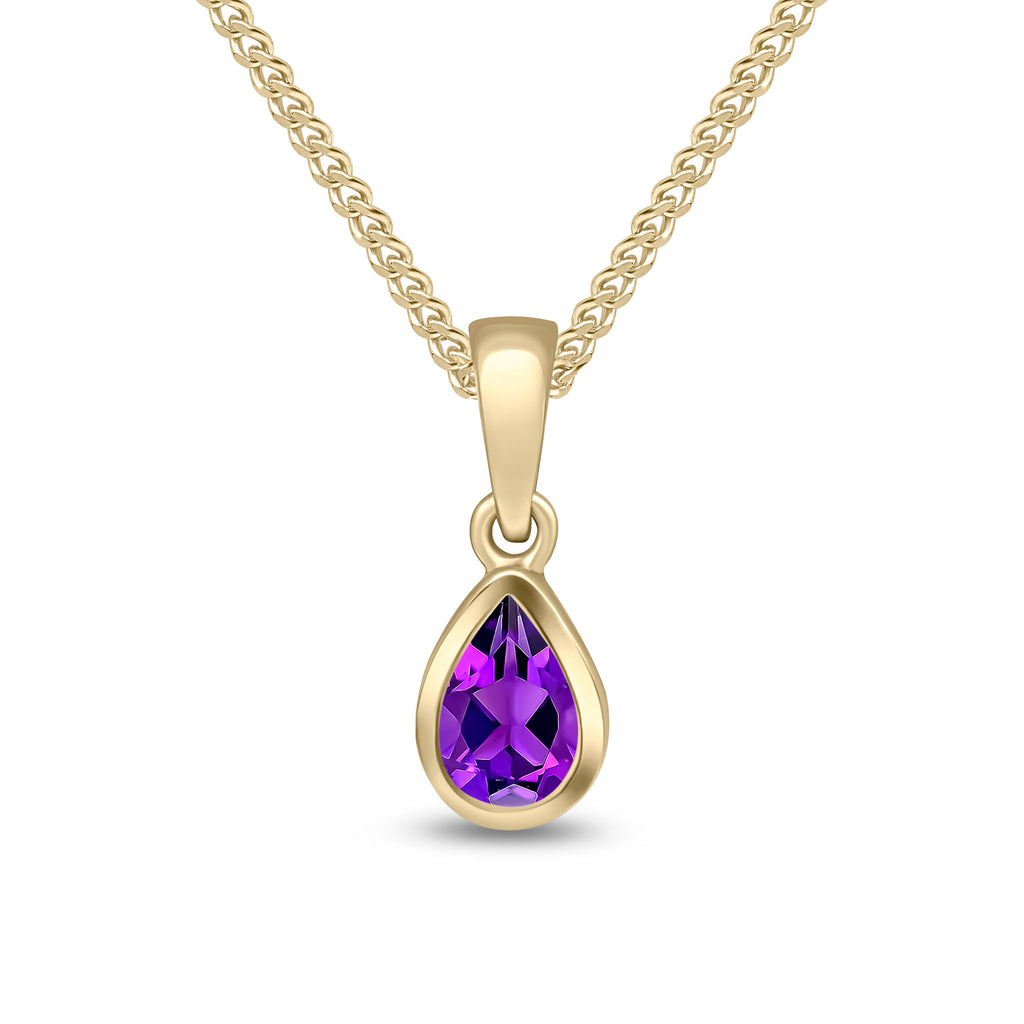 9CT Yellow Gold Pear Shaped Amethyst Rubover Pendant 6x4mm