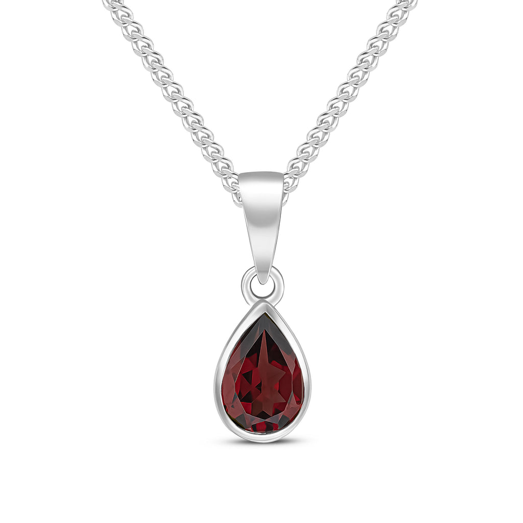 9CT White Gold Pear Shaped Garnet Rubover Pendant 7x5mm
