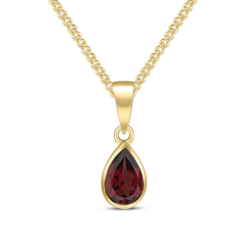 9CT Yellow Gold Pear Shaped Garnet Rubover Pendant 7x5mm