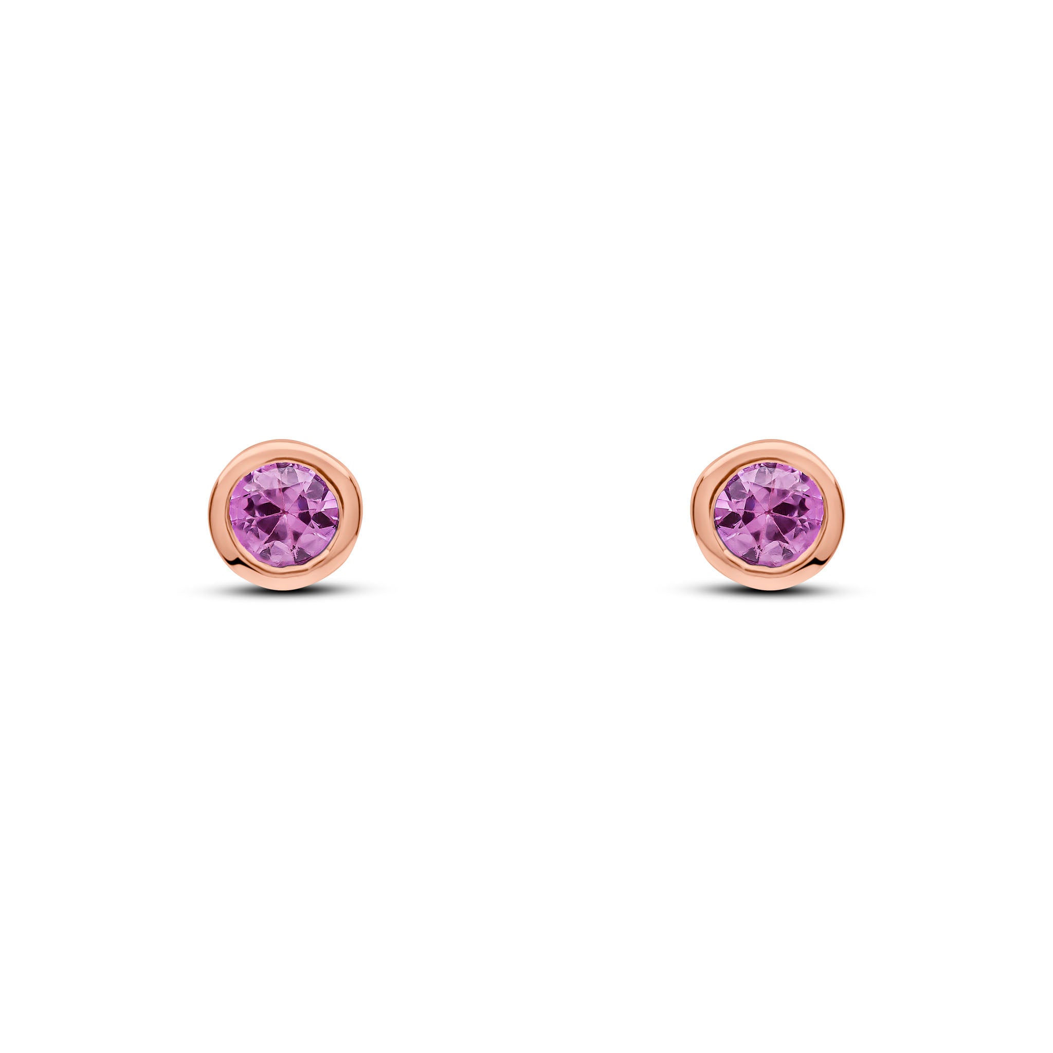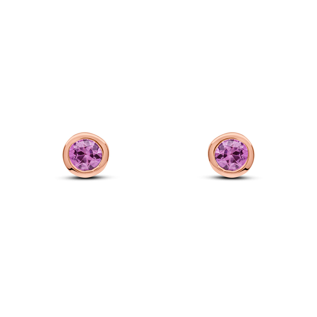 9CT Rose Gold Round Pink Sapphire Rubover Stud Earrings 3mm