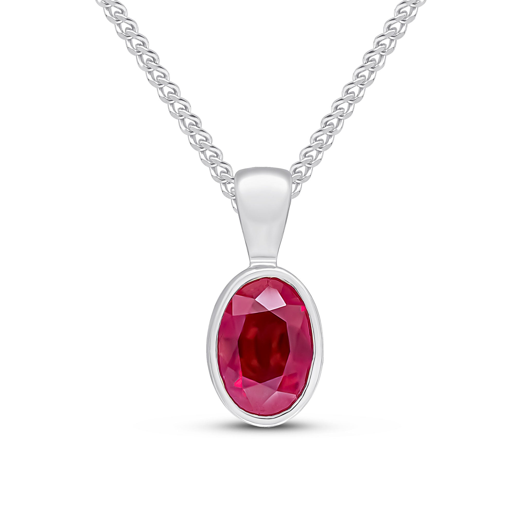 9CT White Gold Oval Ruby Rubover Pendant 7x5mm