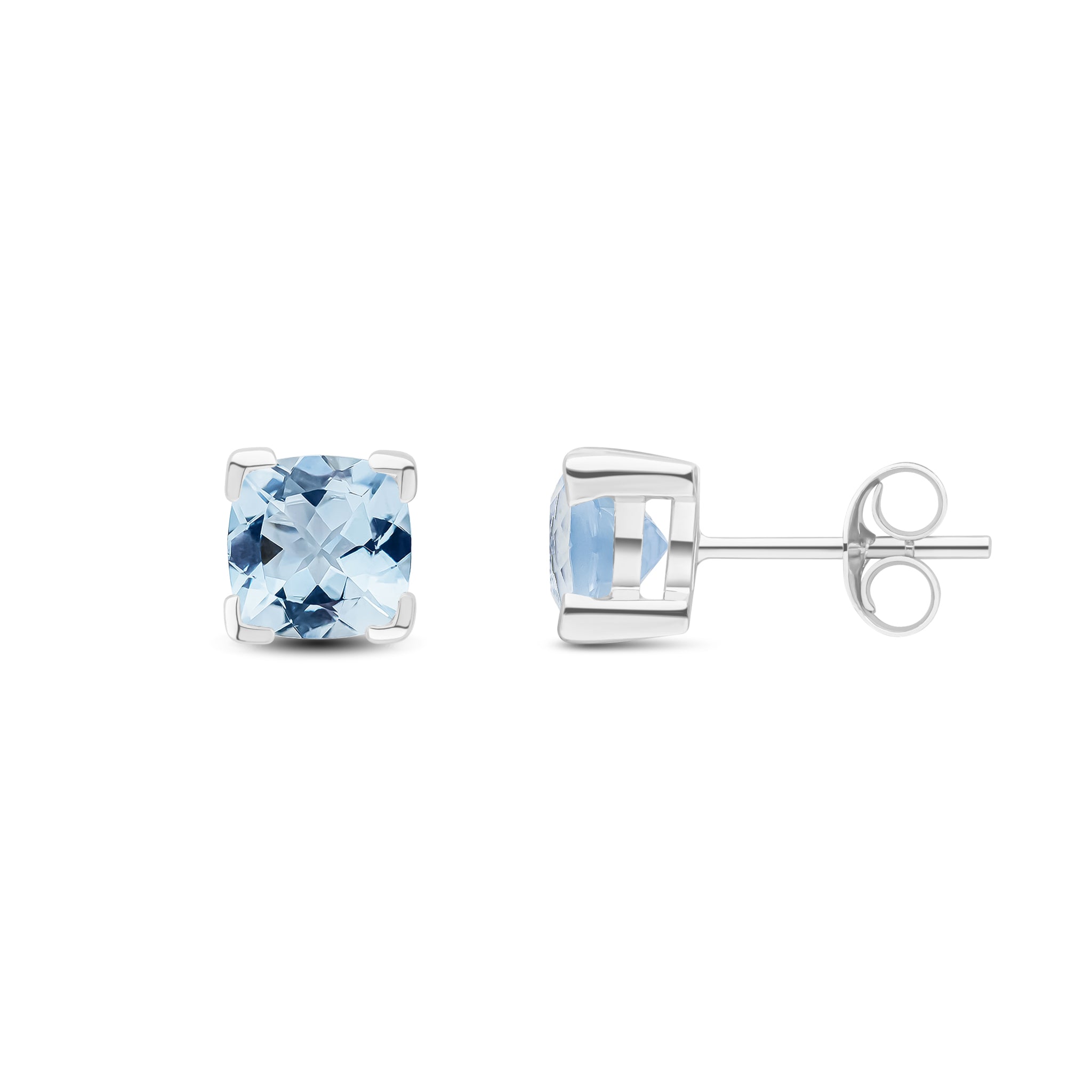 9CT White Gold Cushion Aquamarine Claw Stud Earrings 6mm