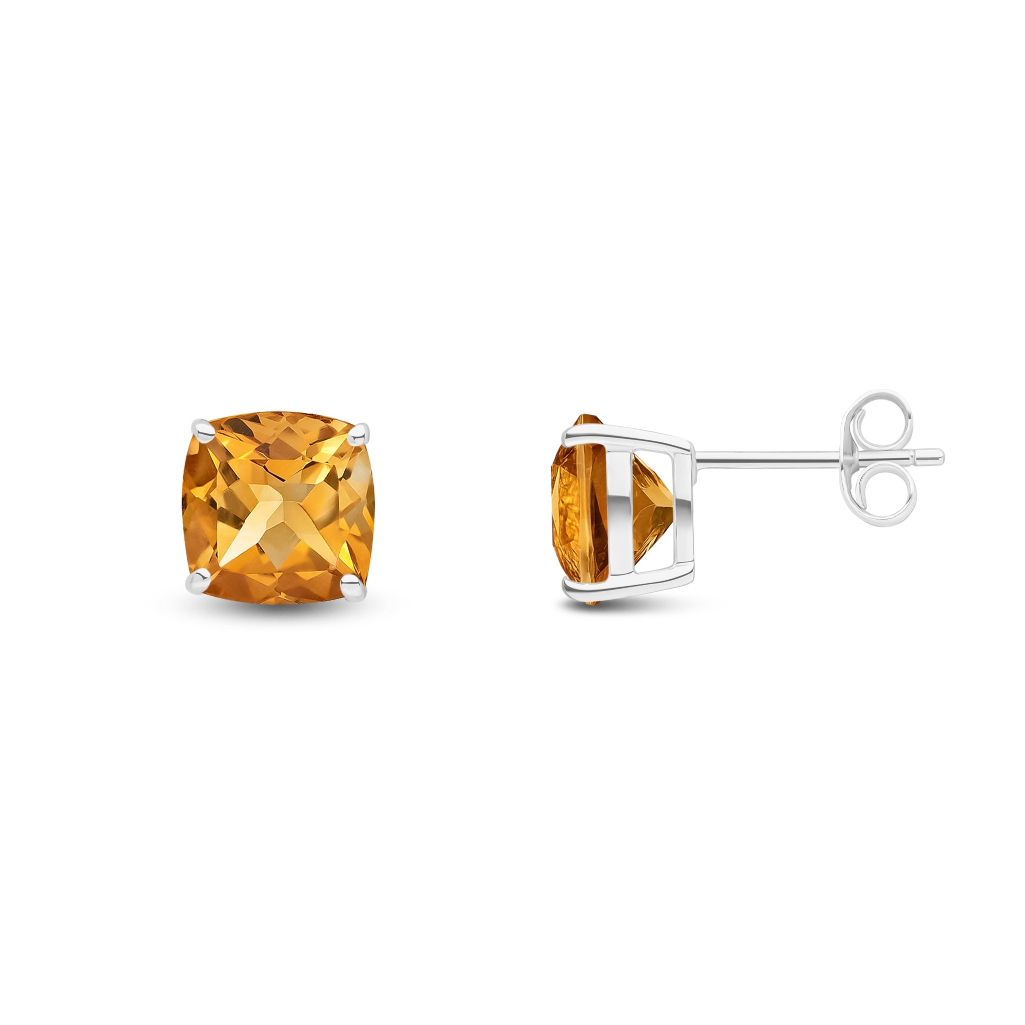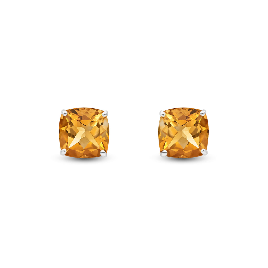 9CT White Gold Cushion Citrine Claw Stud Earrings 8mm