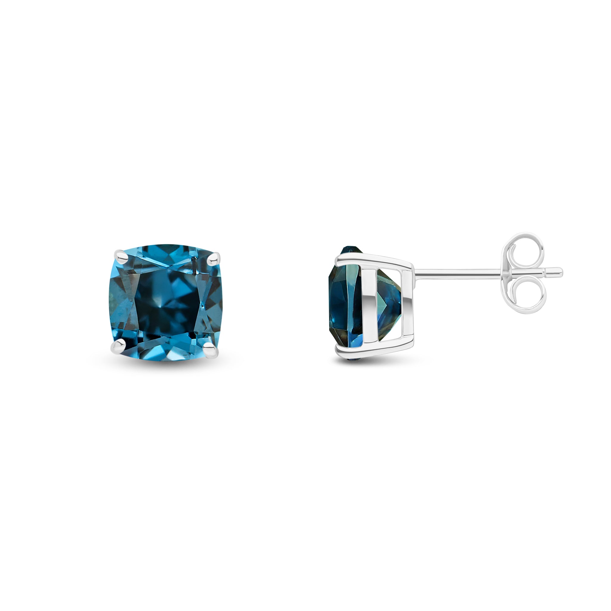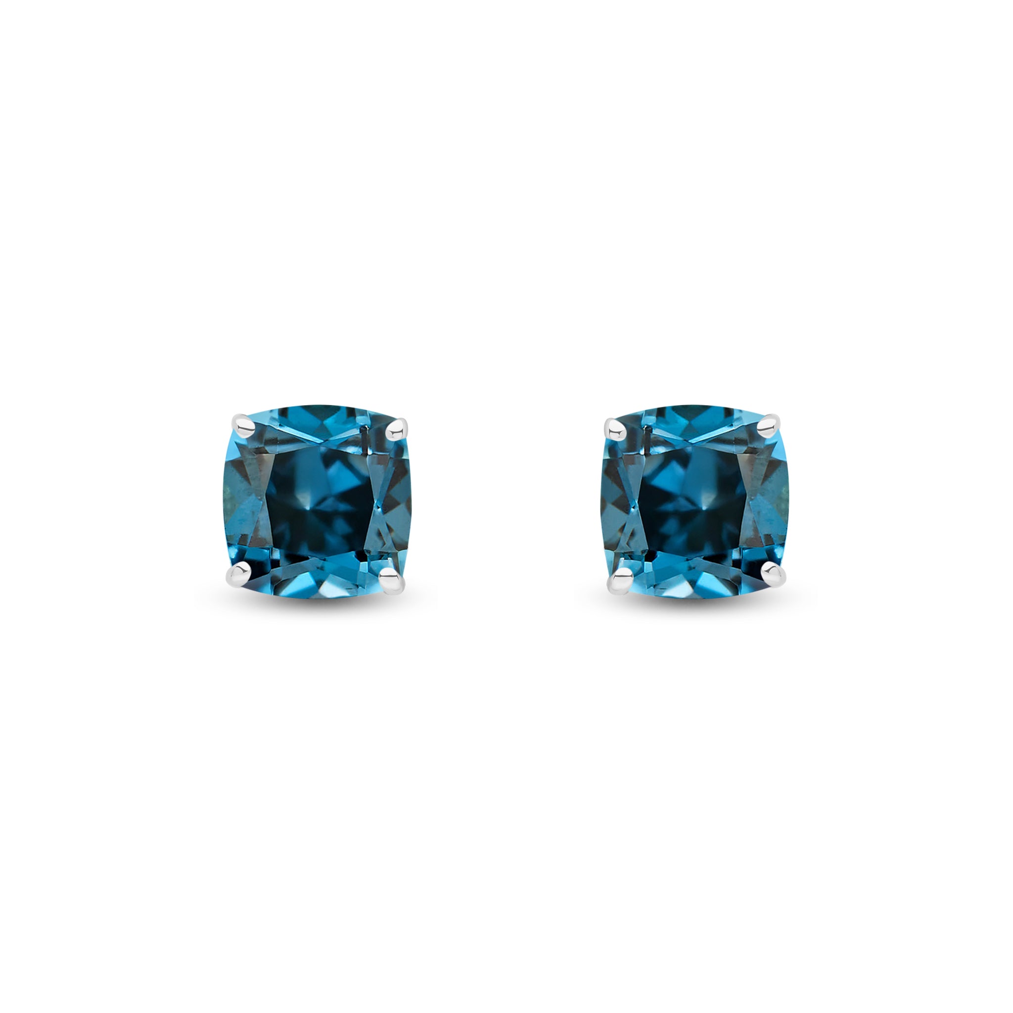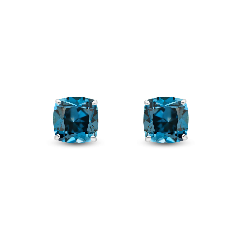 9CT White Gold Cushion London Blue Topaz Claw Stud Earrings 8mm