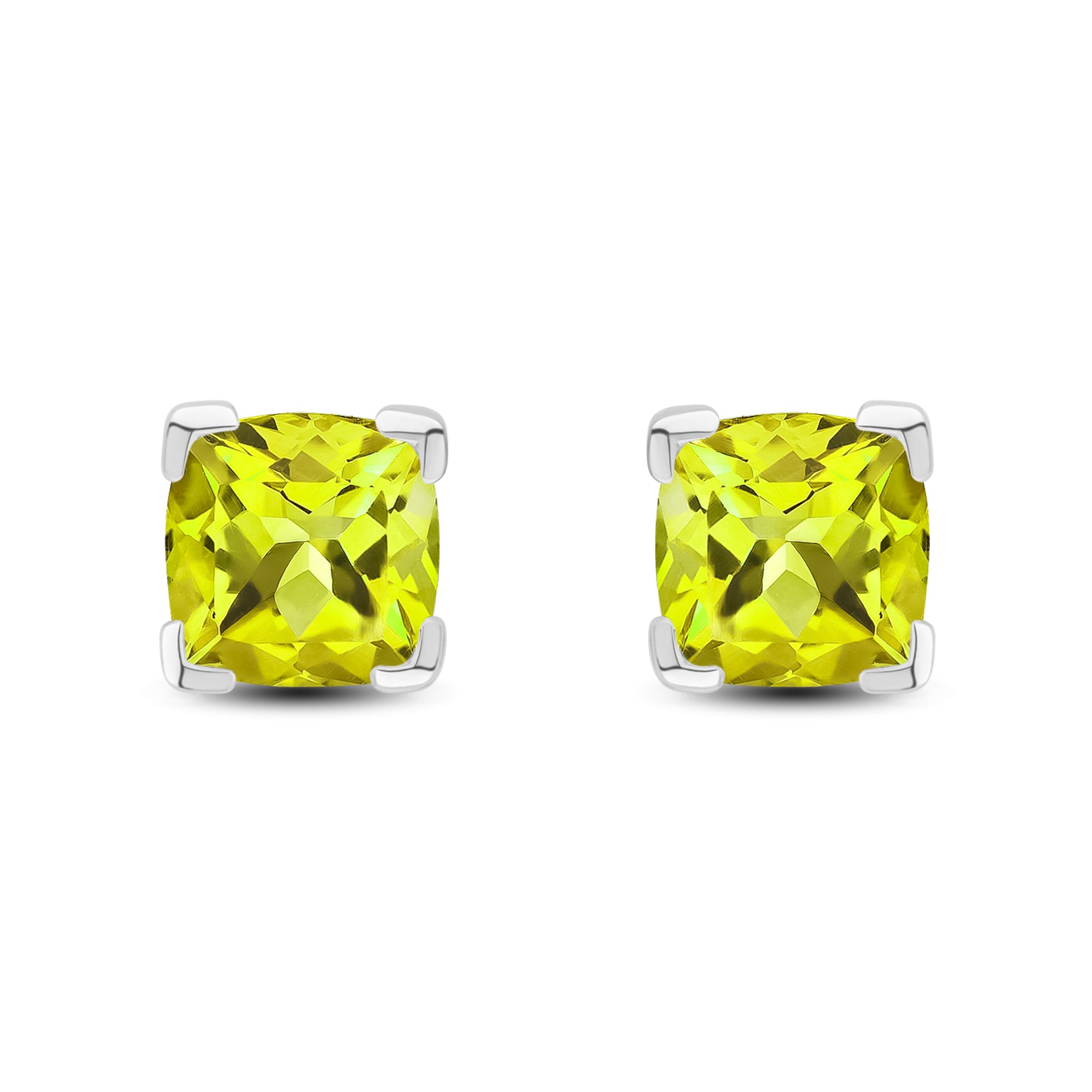 9CT White Gold Cushion Peridot Claw Stud Earrings 6mm
