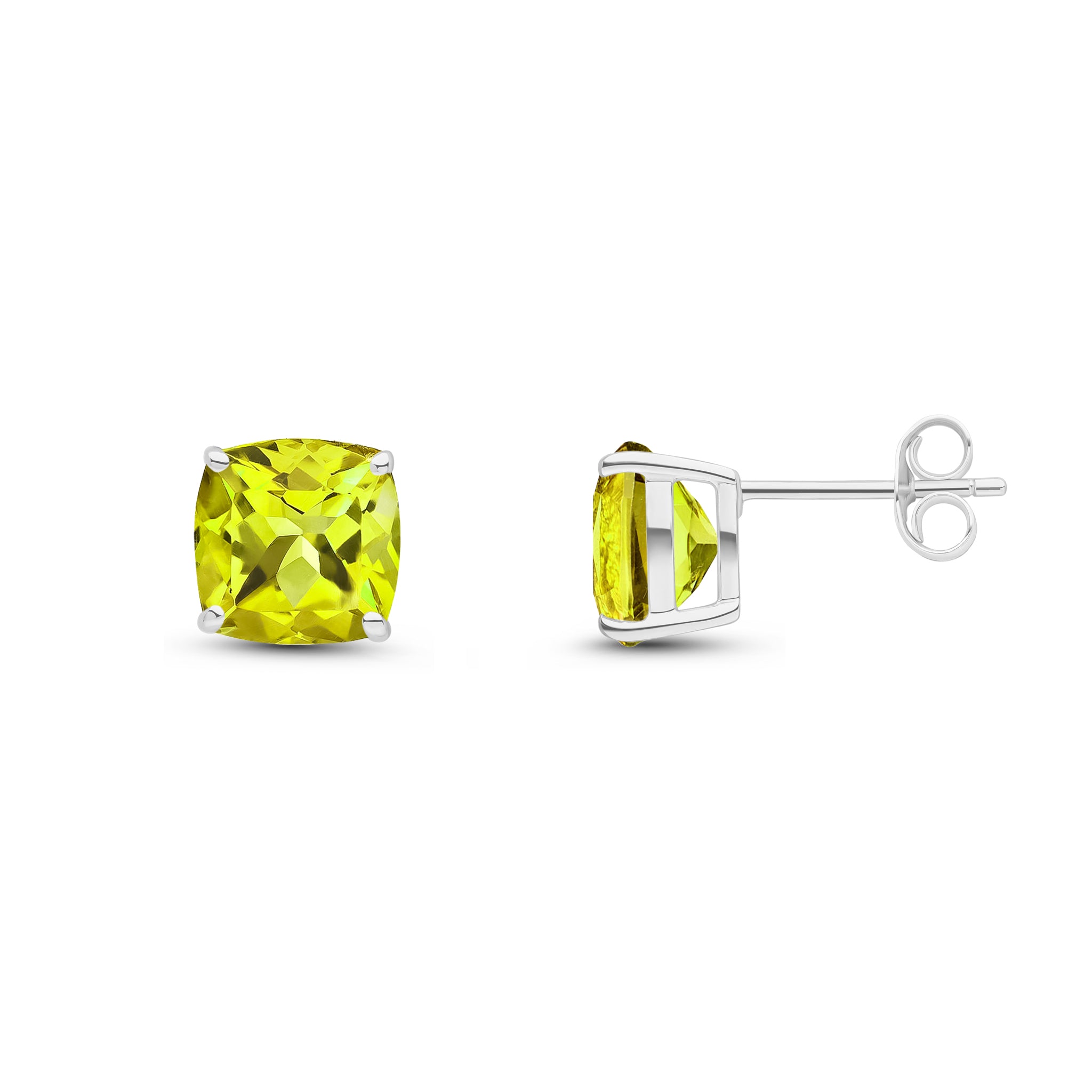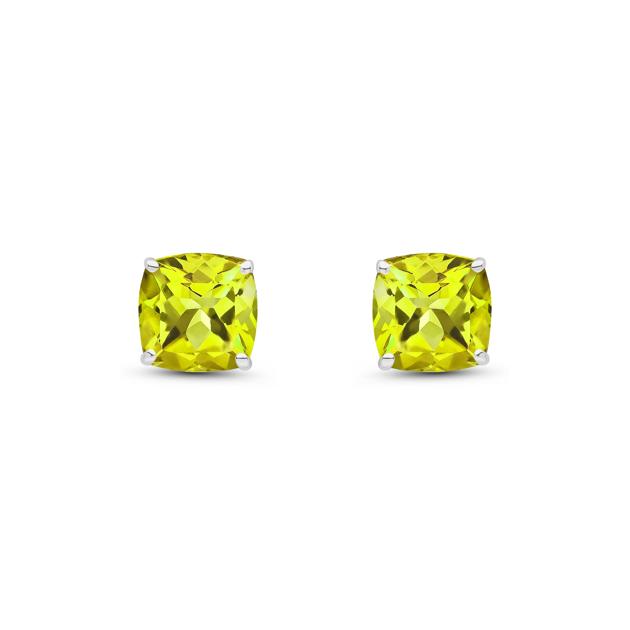 9CT White Gold Cushion Peridot Claw Stud Earrings 8mm