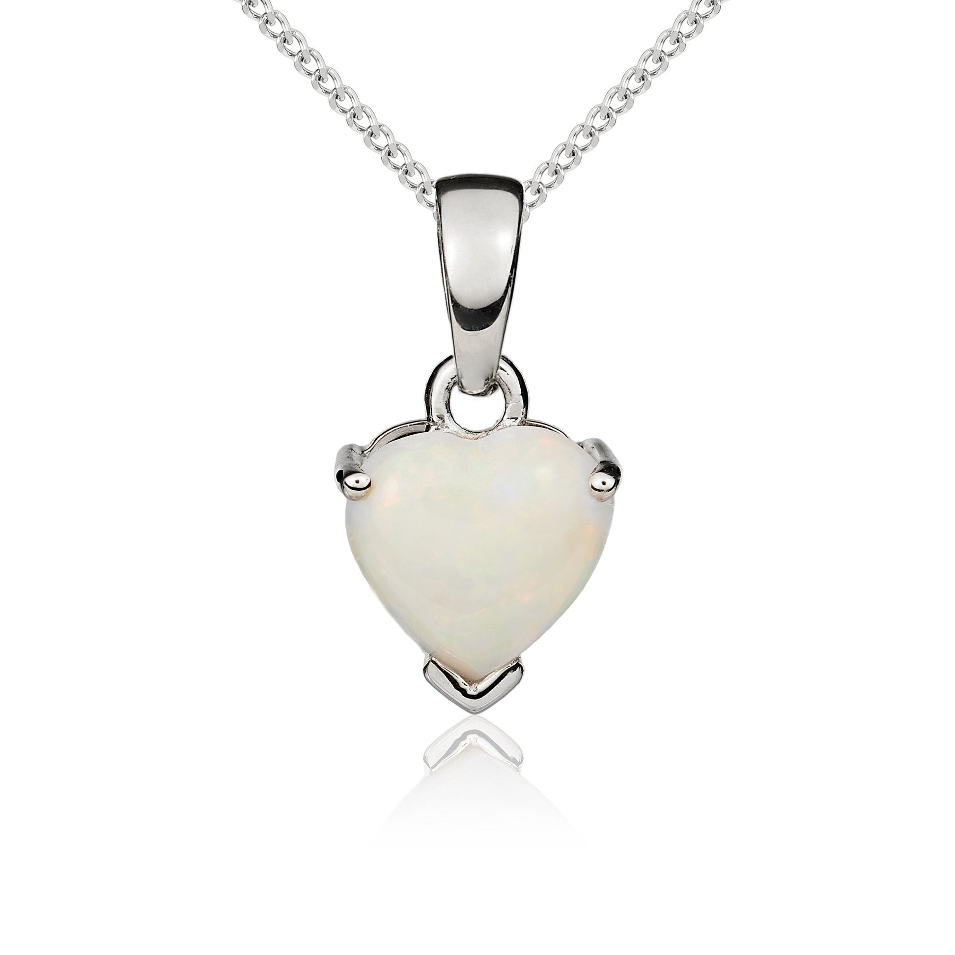 9CT White Gold Heart Opal Claw Pendant 8mm