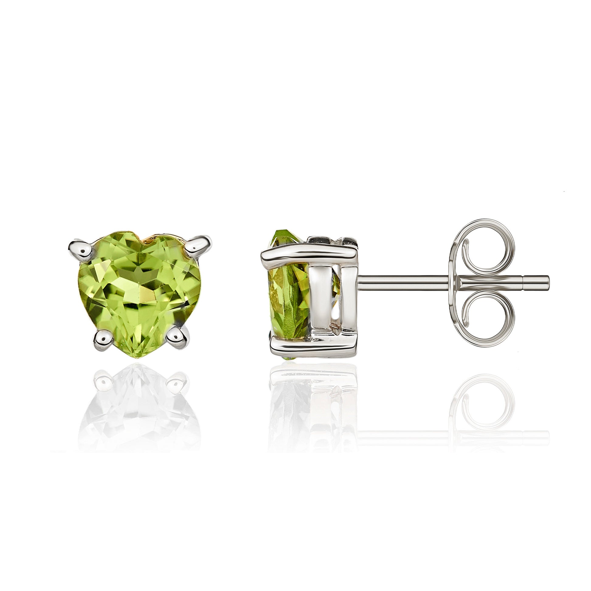 9CT White Gold Heart Peridot Claw Stud Earrings 6mm