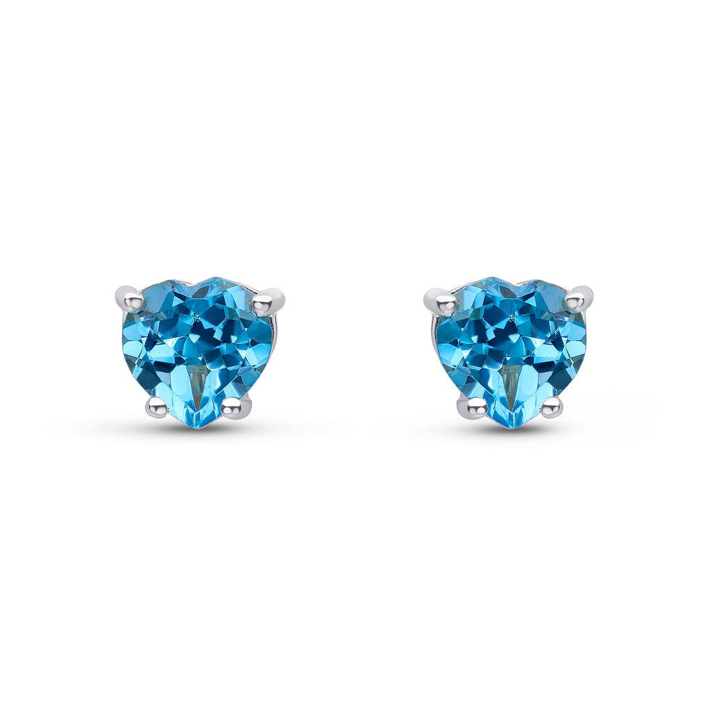 9CT White Gold Heart Swiss Blue Topaz Claw Stud Earrings 6mm