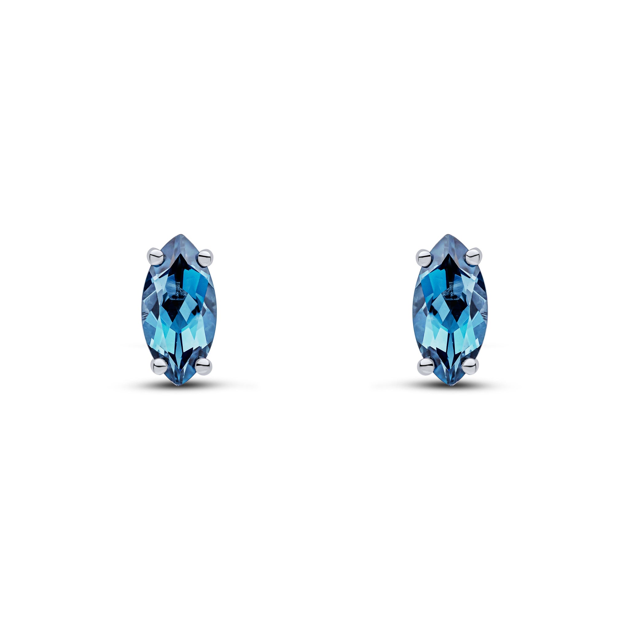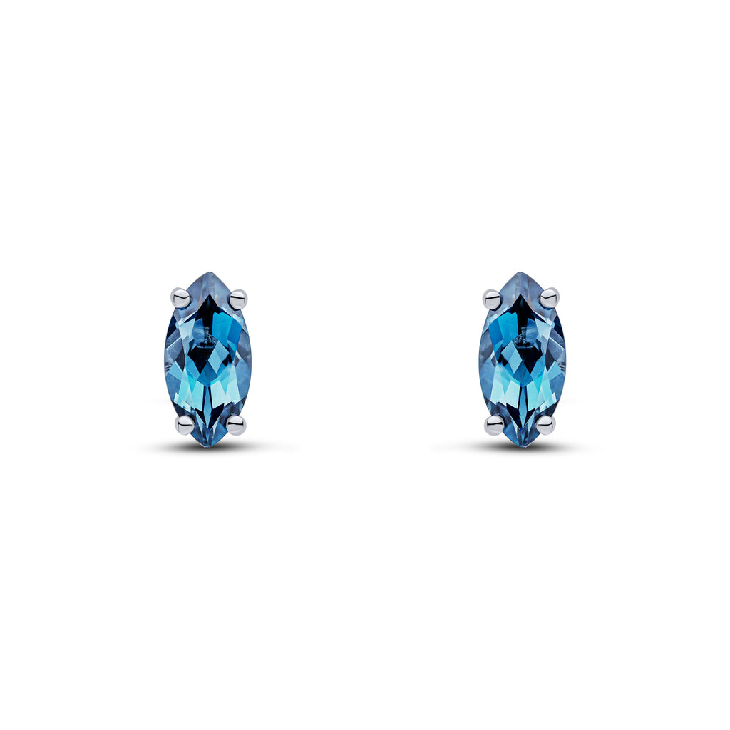 9CT White Gold Marquise London Blue Topaz Claw Stud Earrings 8x4mm