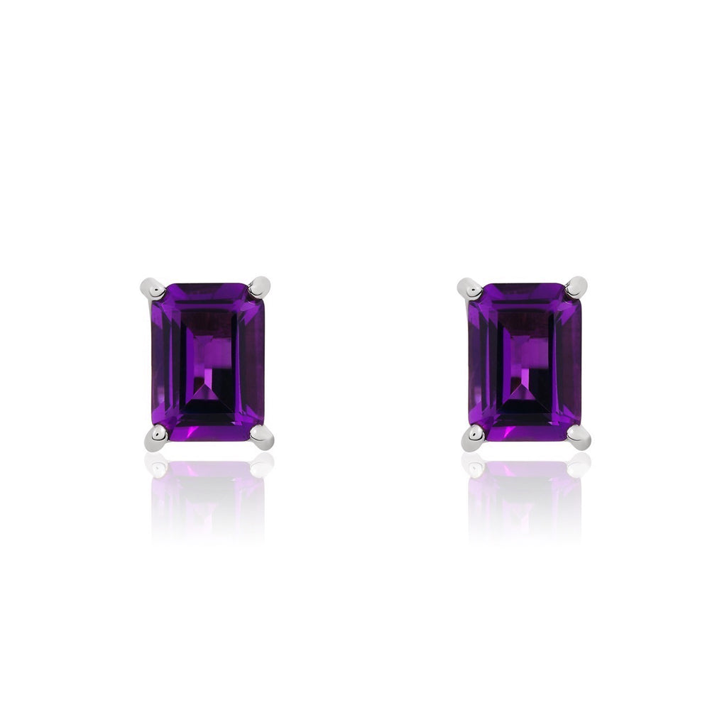 9CT White Gold Octagonal Amethyst Claw Stud Earrings 7x5mm