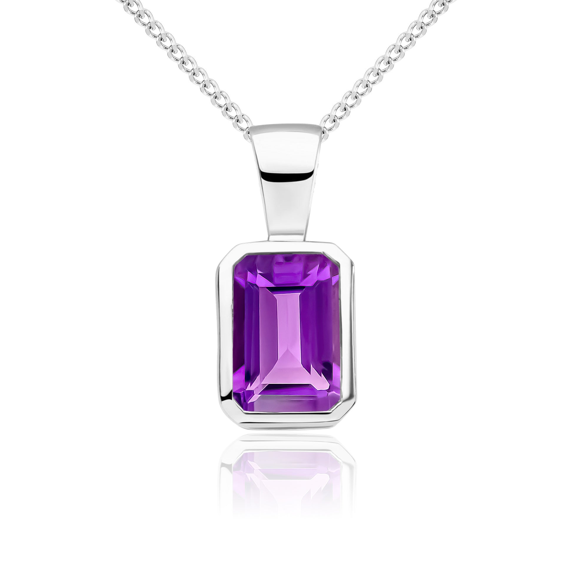 9CT White Gold Octagonal Amethyst Rubover Pendant 7x5mm