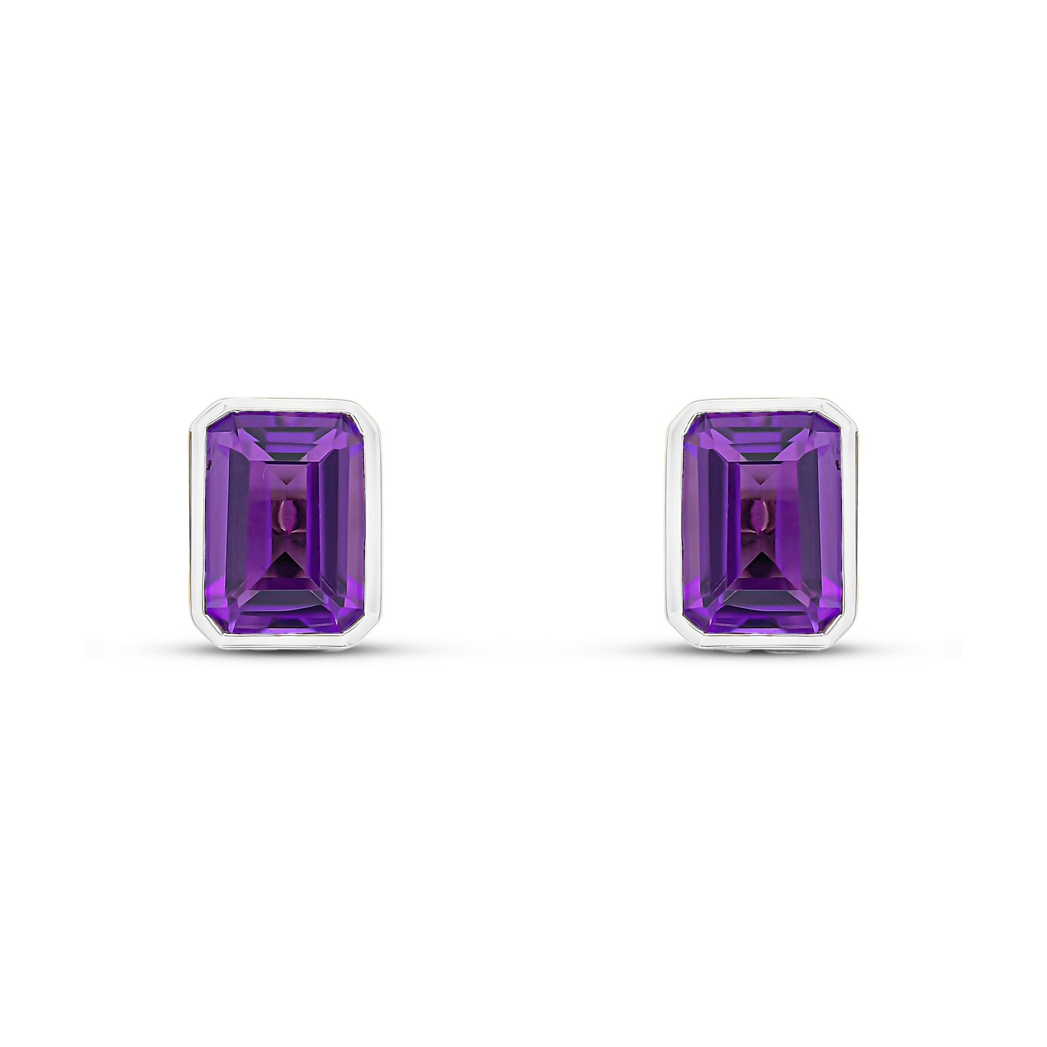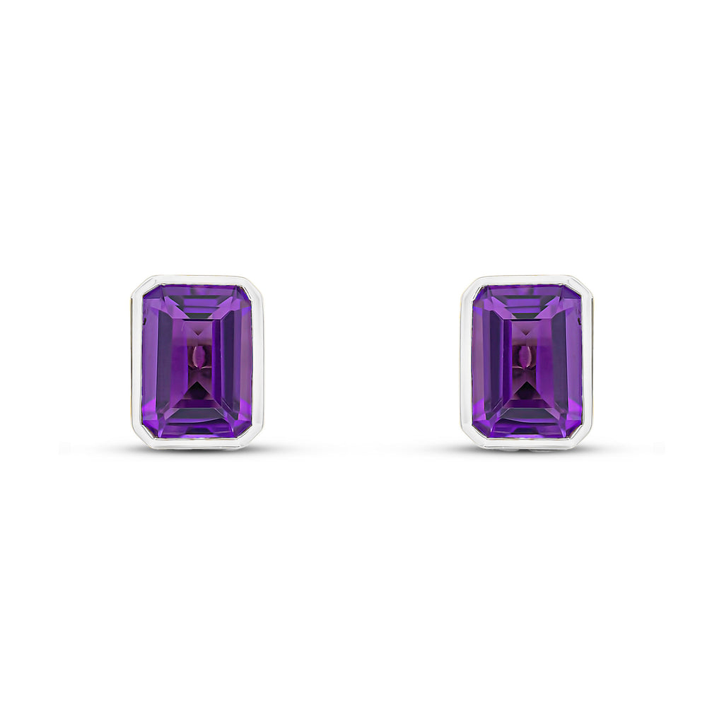 9CT White Gold Octagonal Amethyst Rubover Stud Earrings 7x5mm