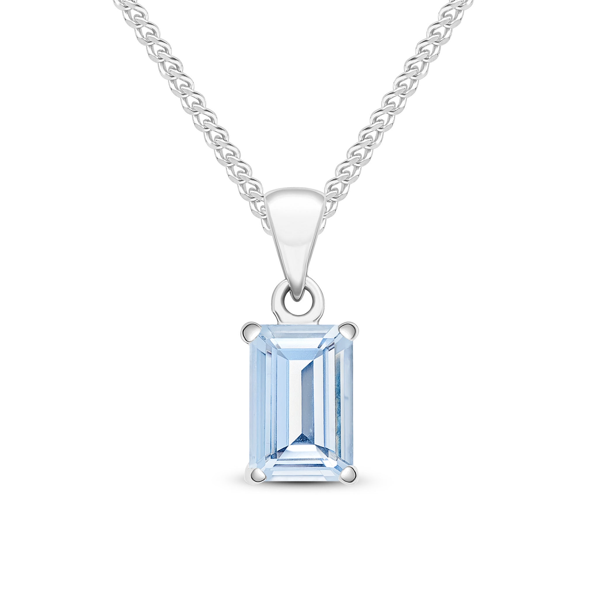 9CT White Gold Octagonal Aquamarine Claw Pendant 7x5mm