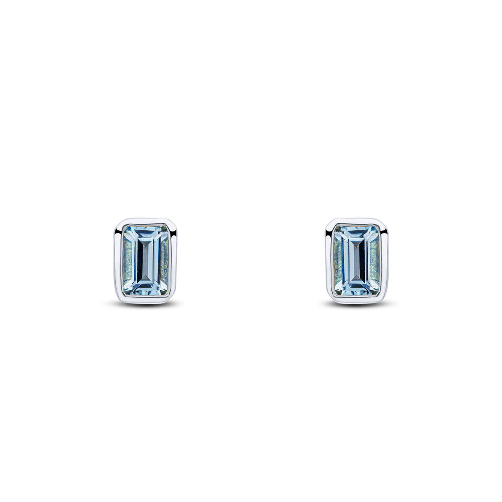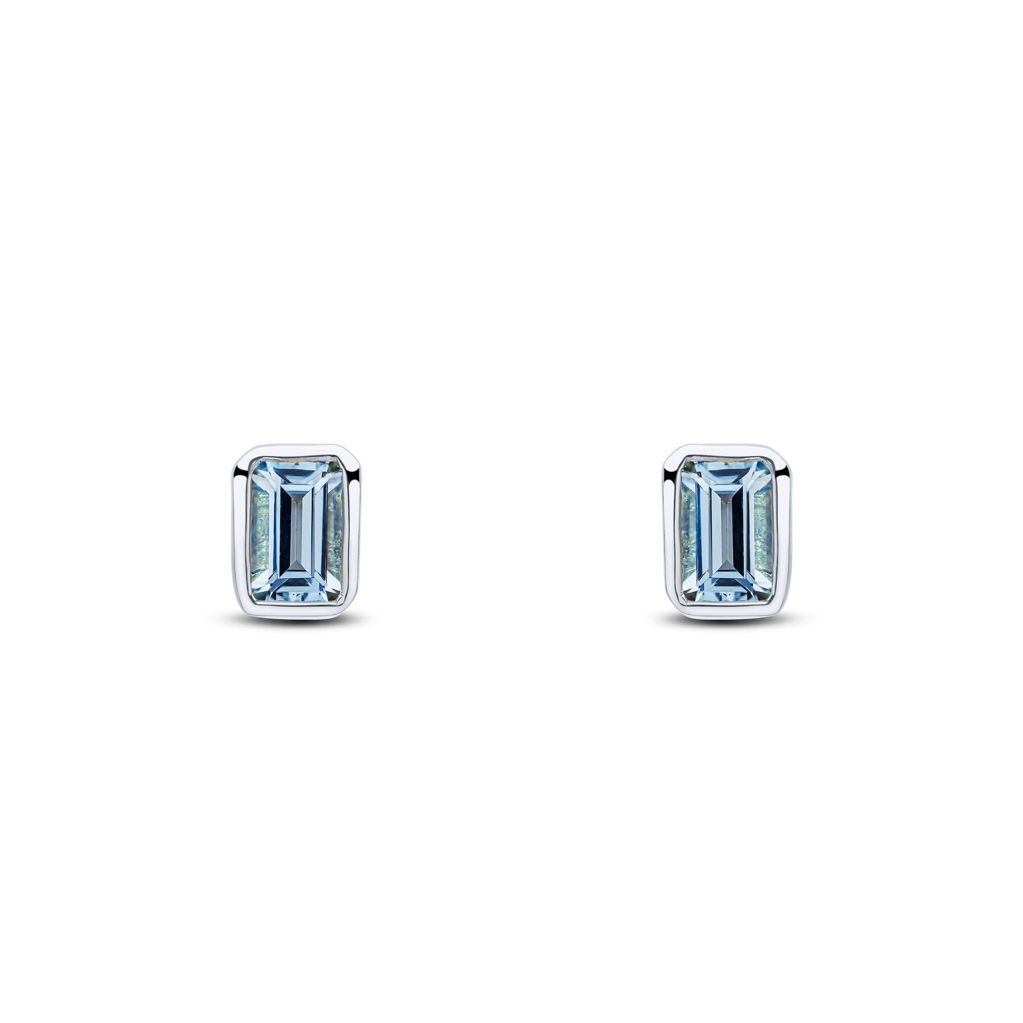 9CT White Gold Octagonal Aquamarine Rubover Stud Earrings 5x3mm