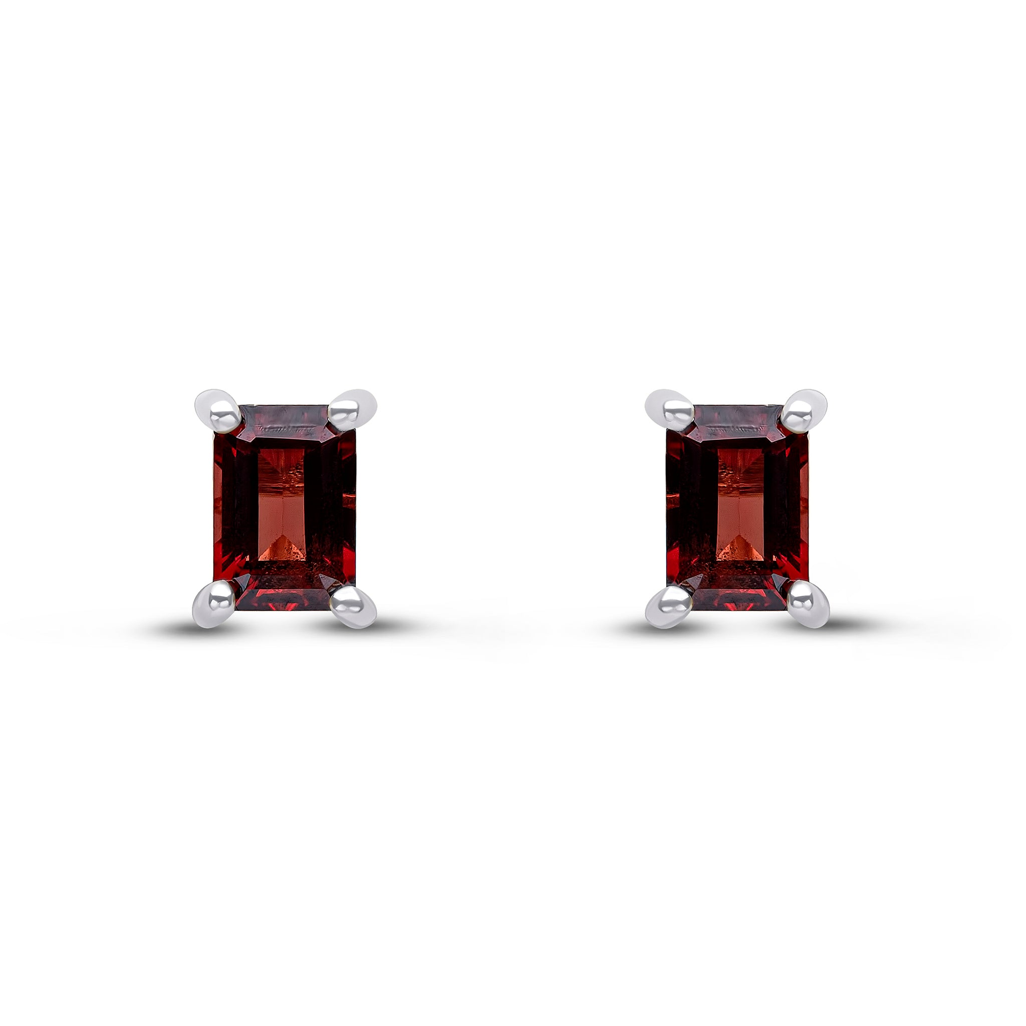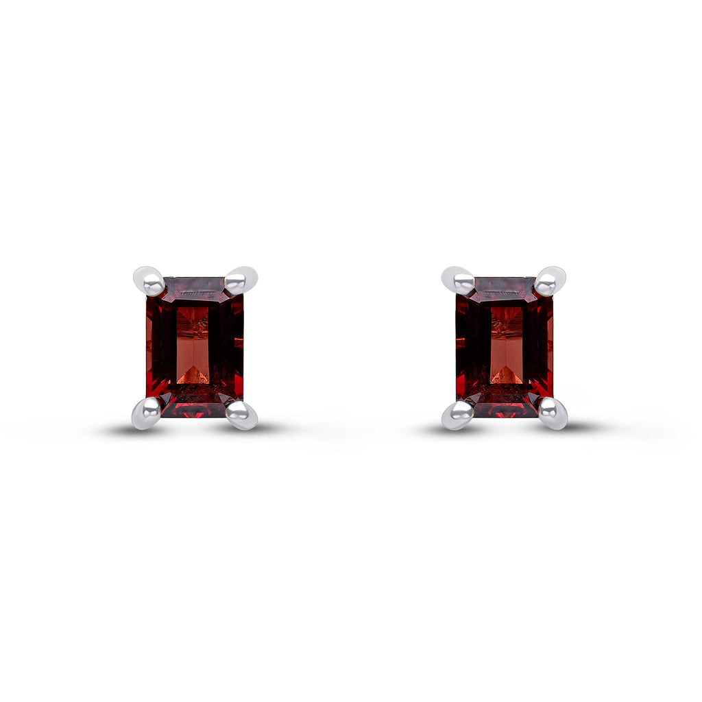 9CT White Gold Octagonal Garnet Claw Stud Earrings 6x4mm