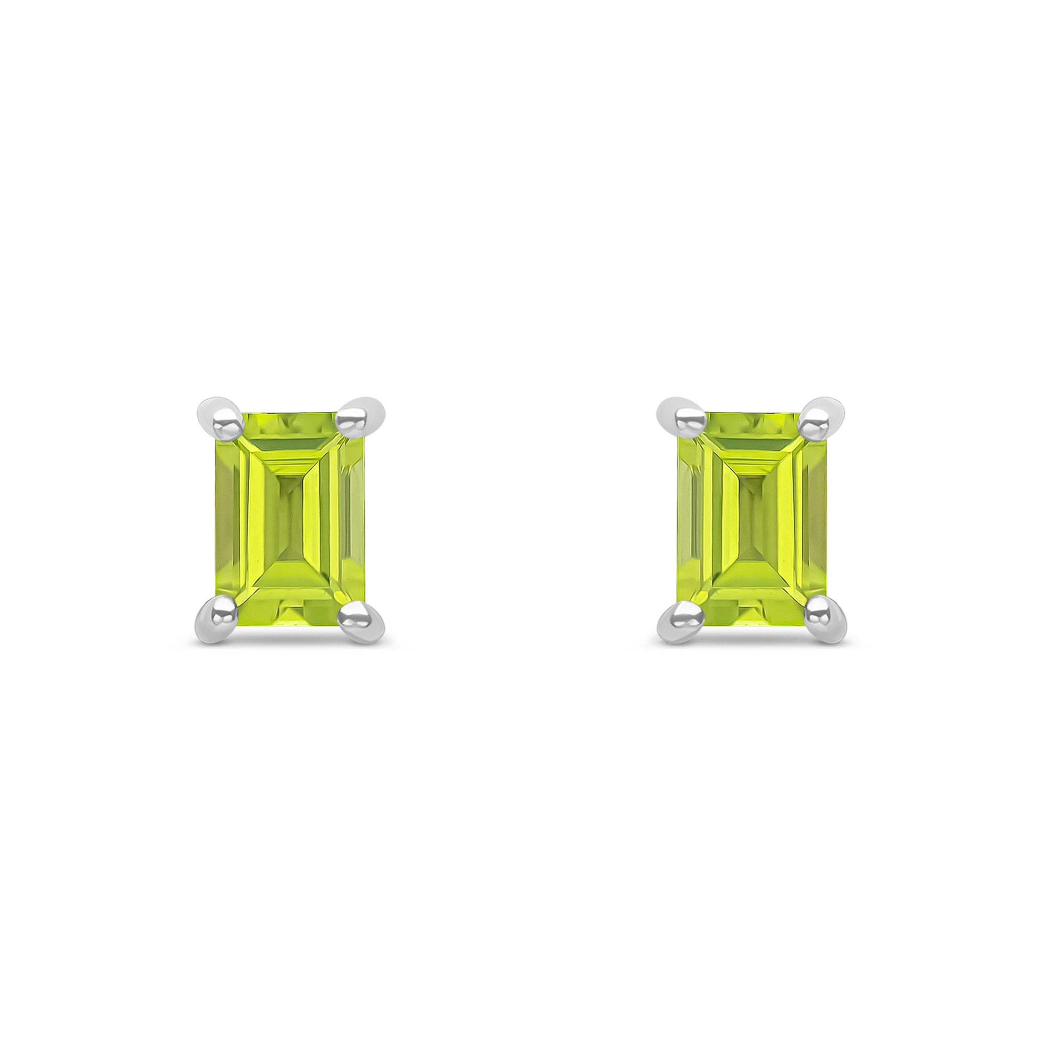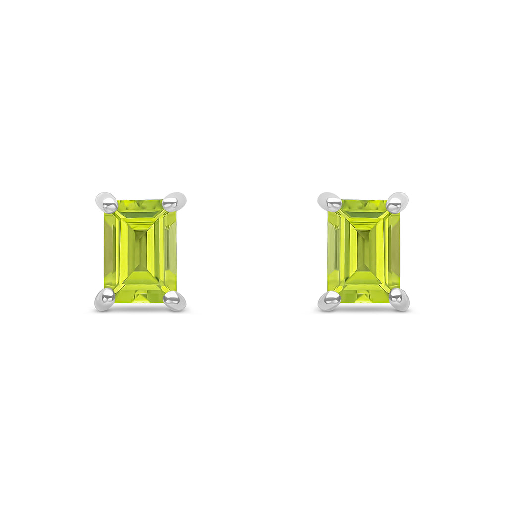 9CT White Gold Octagonal Peridot Claw Stud Earrings 6x4mm