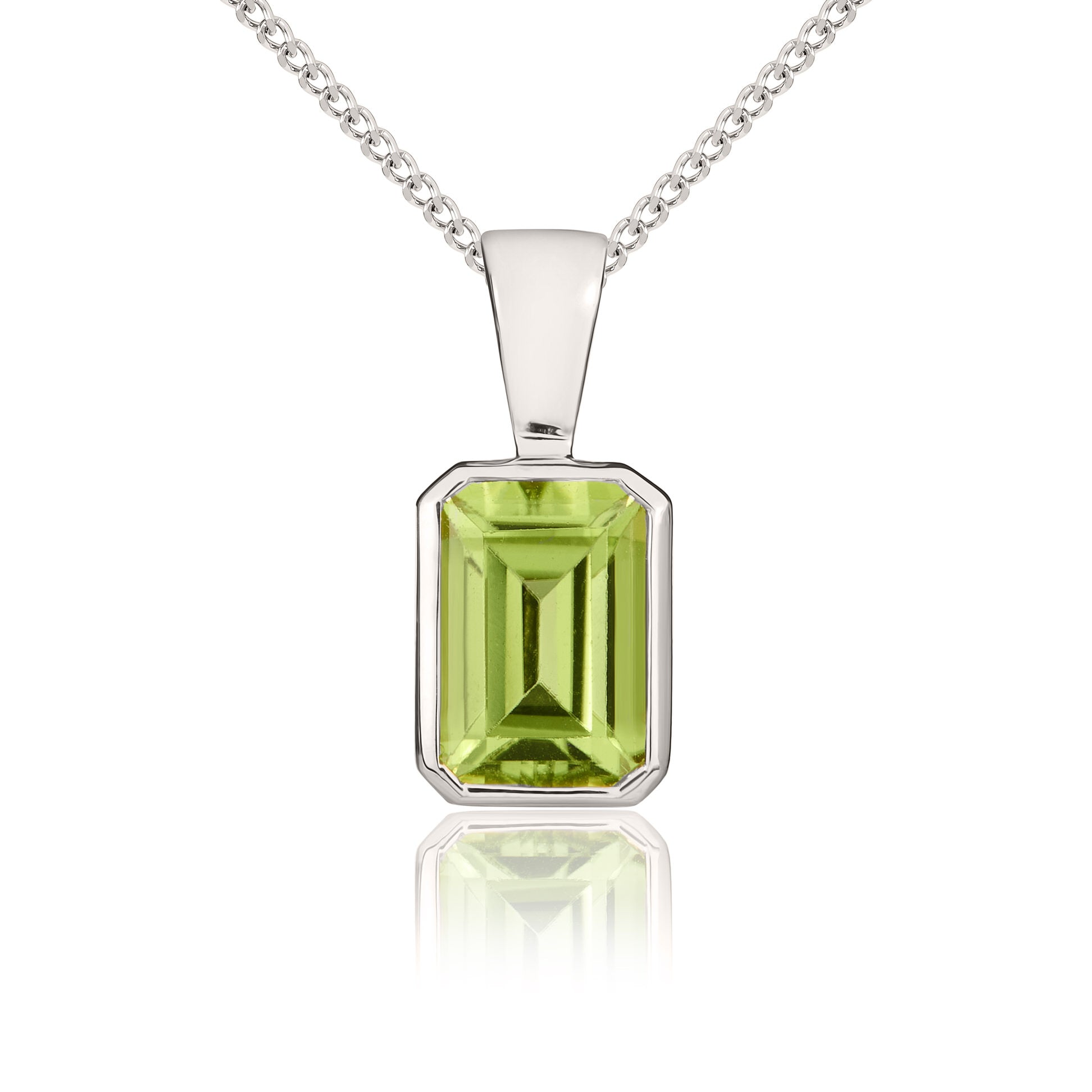 9CT White Gold Octagonal Peridot Rubover Pendant 7x5mm