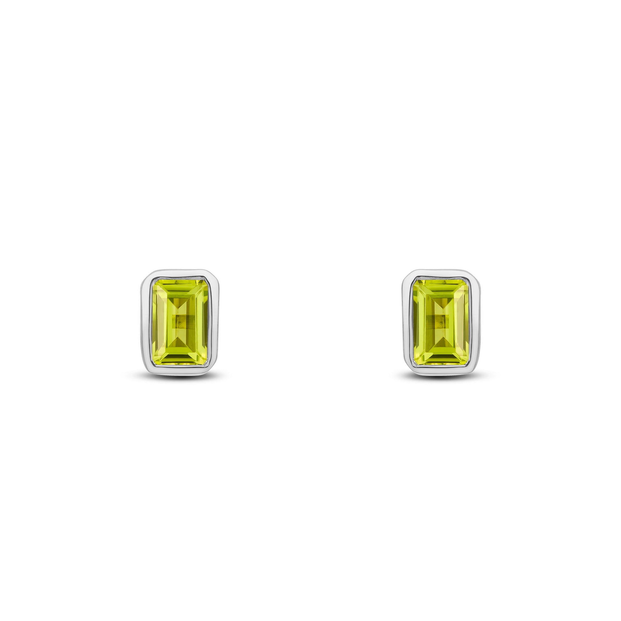 9CT White Gold Octagonal Peridot Rubover Stud Earrings 5x3mm