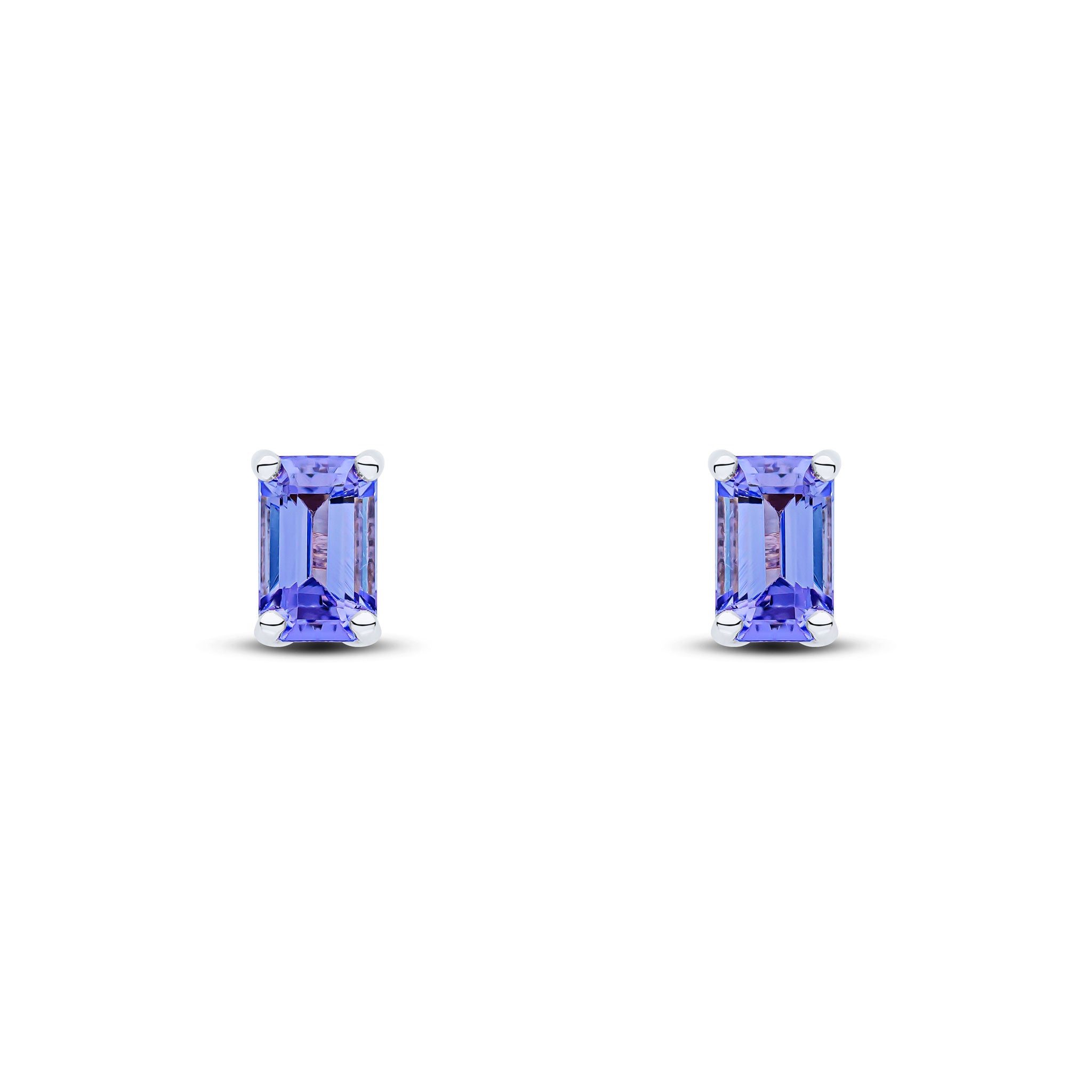 9CT White Gold Octagonal Tanzanite Claw Stud Earrings 5x3mm