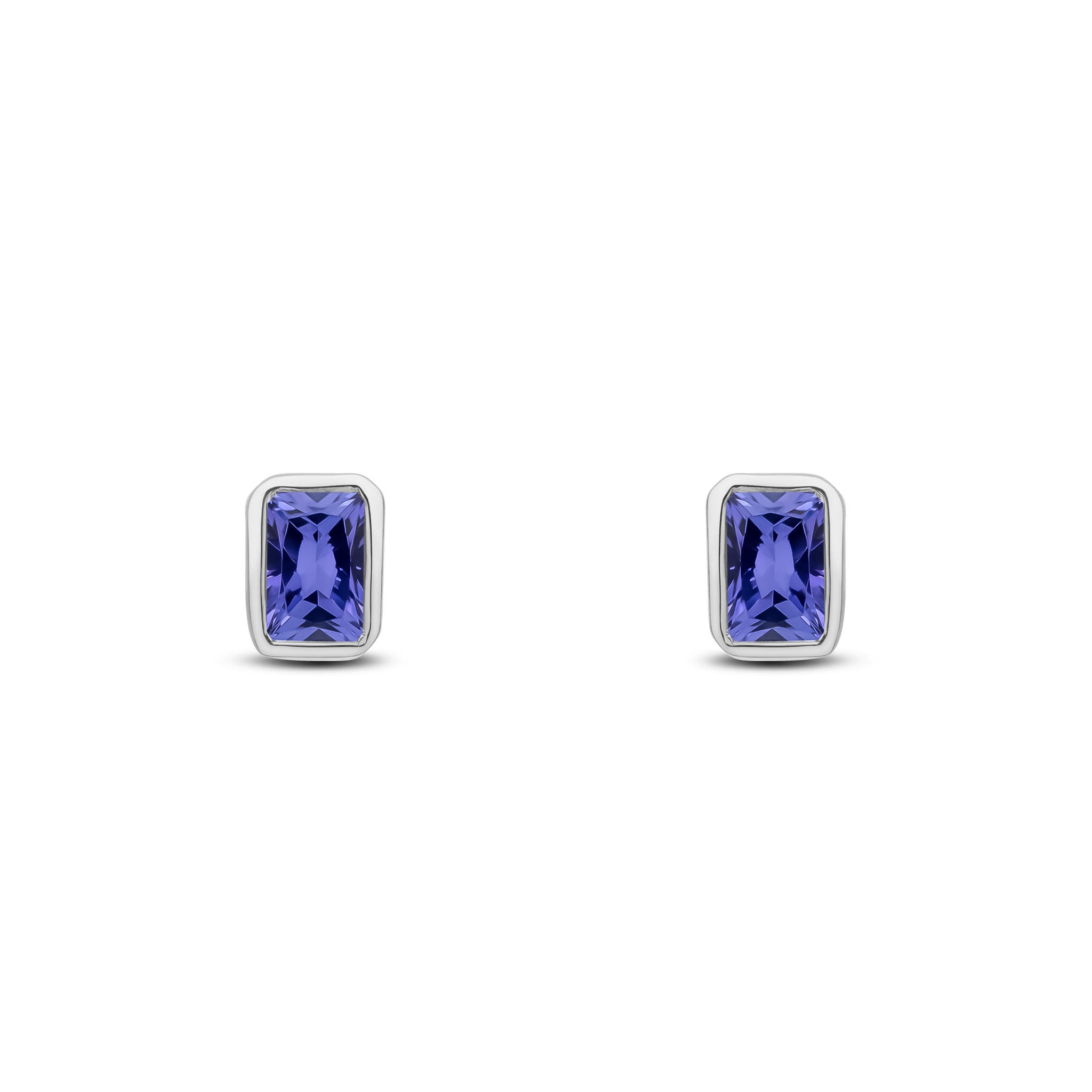 9CT White Gold Octagonal Tanzanite Rubover Stud Earrings 5x3mm