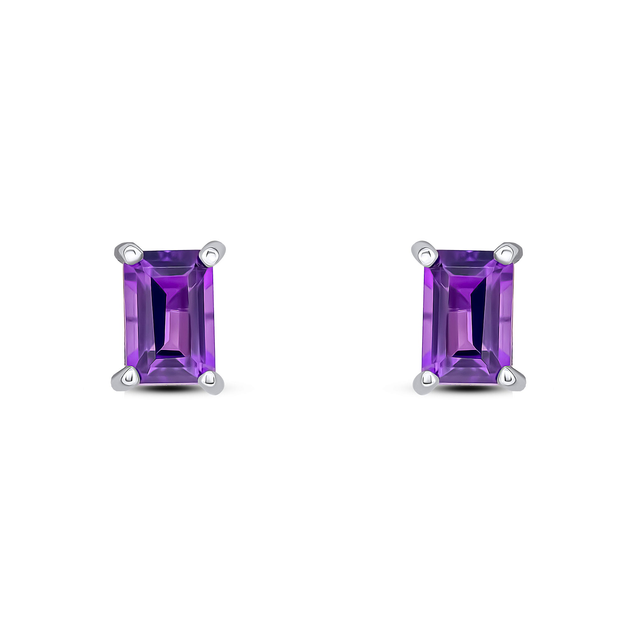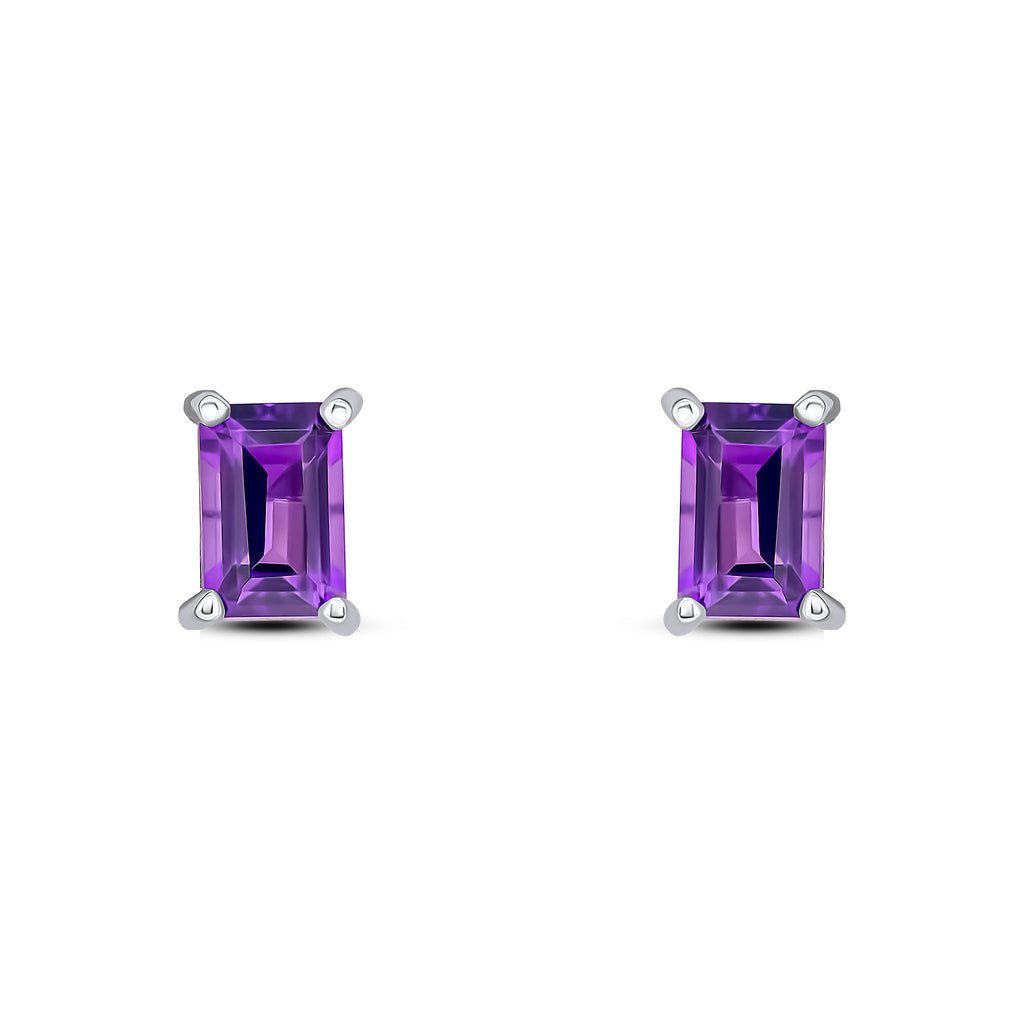 9CT White Gold Octagonal Amethyst Claw Stud Earrings 6x4mm